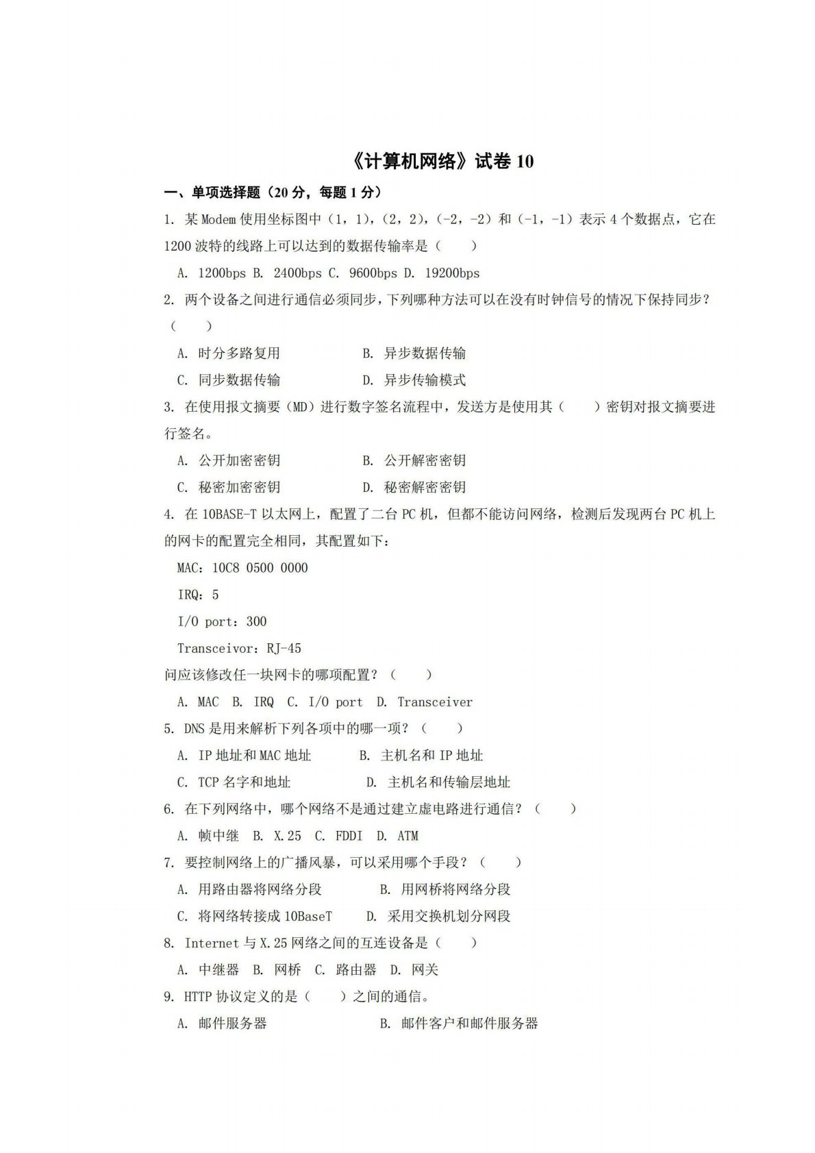 广西师范大学806计算机专业综合(含数据结构和计算机网络)试卷10