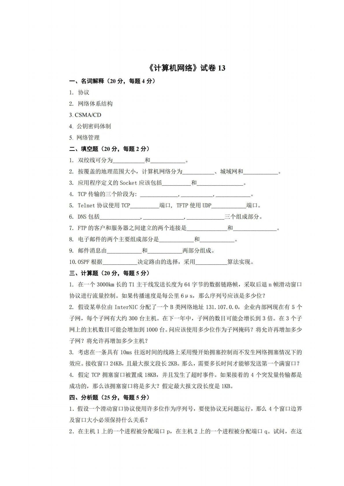 广西师范大学806计算机专业综合(含数据结构和计算机网络)试卷13