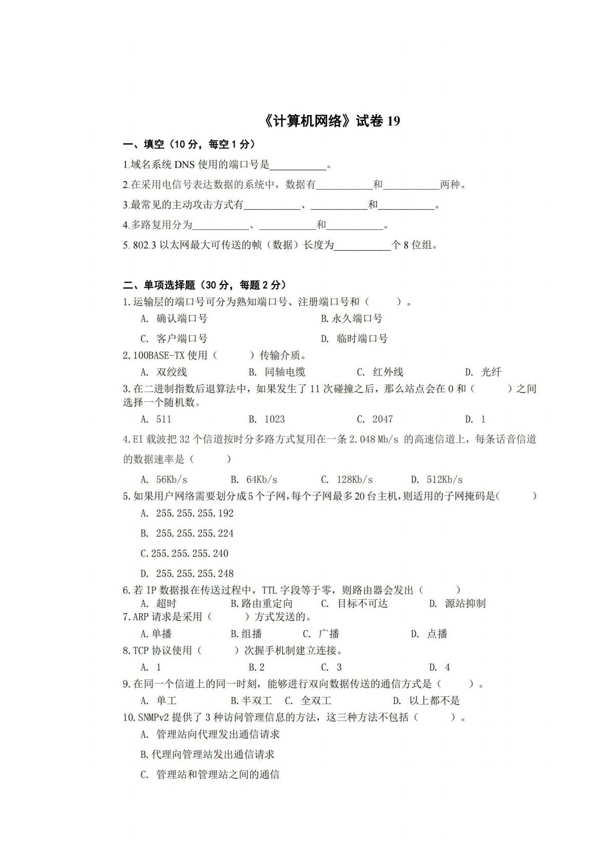广西师范大学806计算机专业综合(含数据结构和计算机网络)试卷19