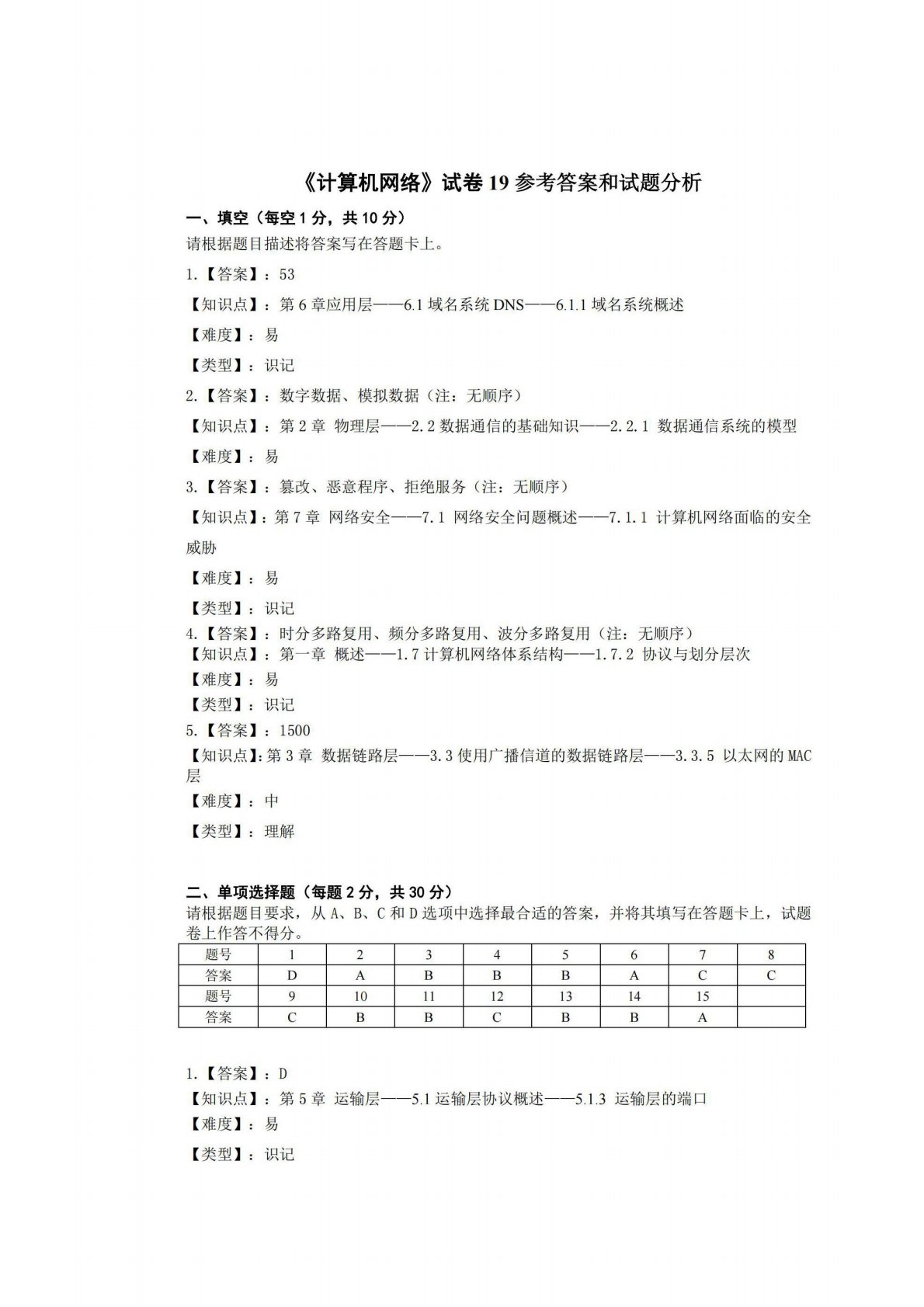 广西师范大学806计算机专业综合(含数据结构和计算机网络)试卷19答案