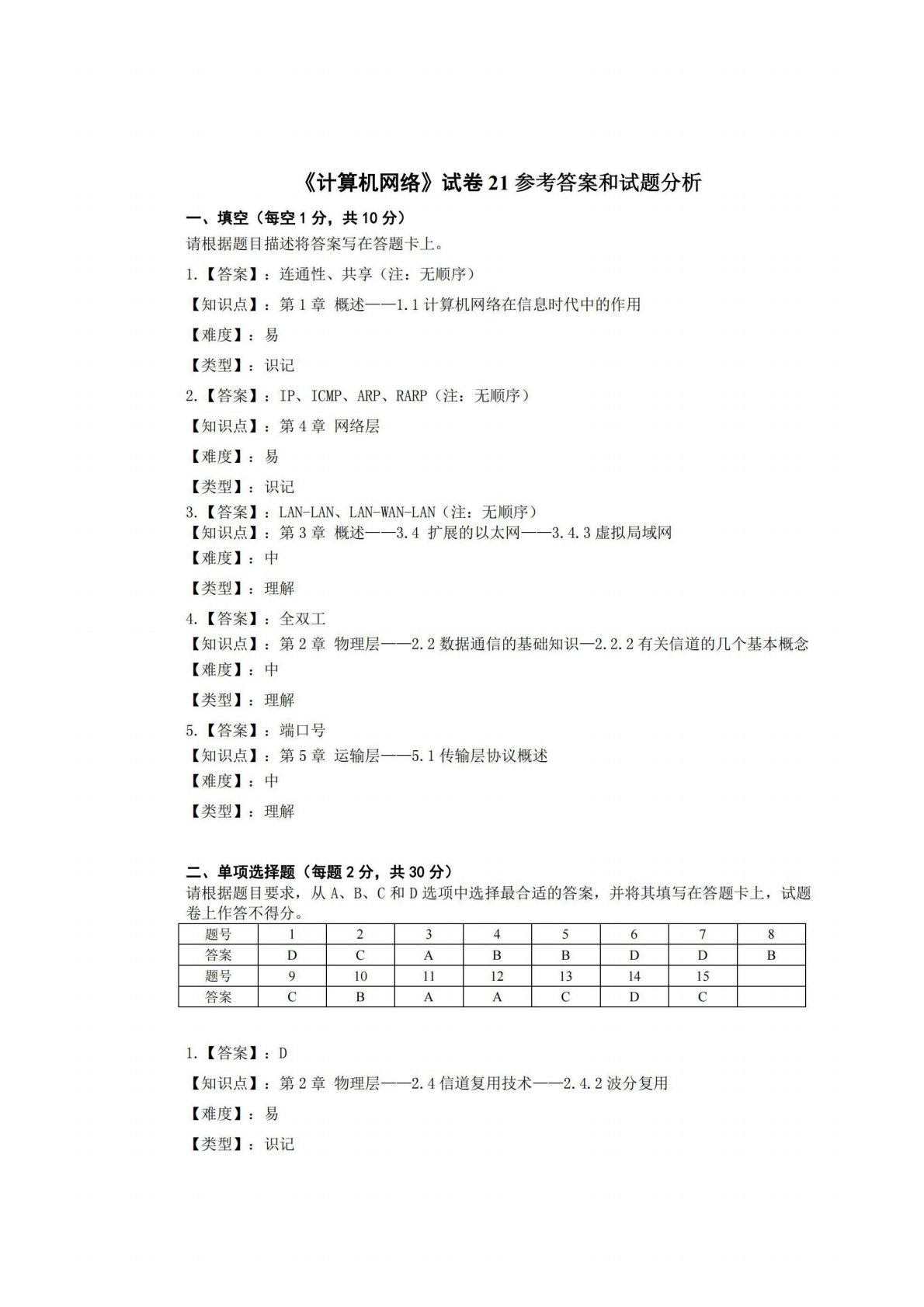 广西师范大学806计算机专业综合(含数据结构和计算机网络)试卷21答案