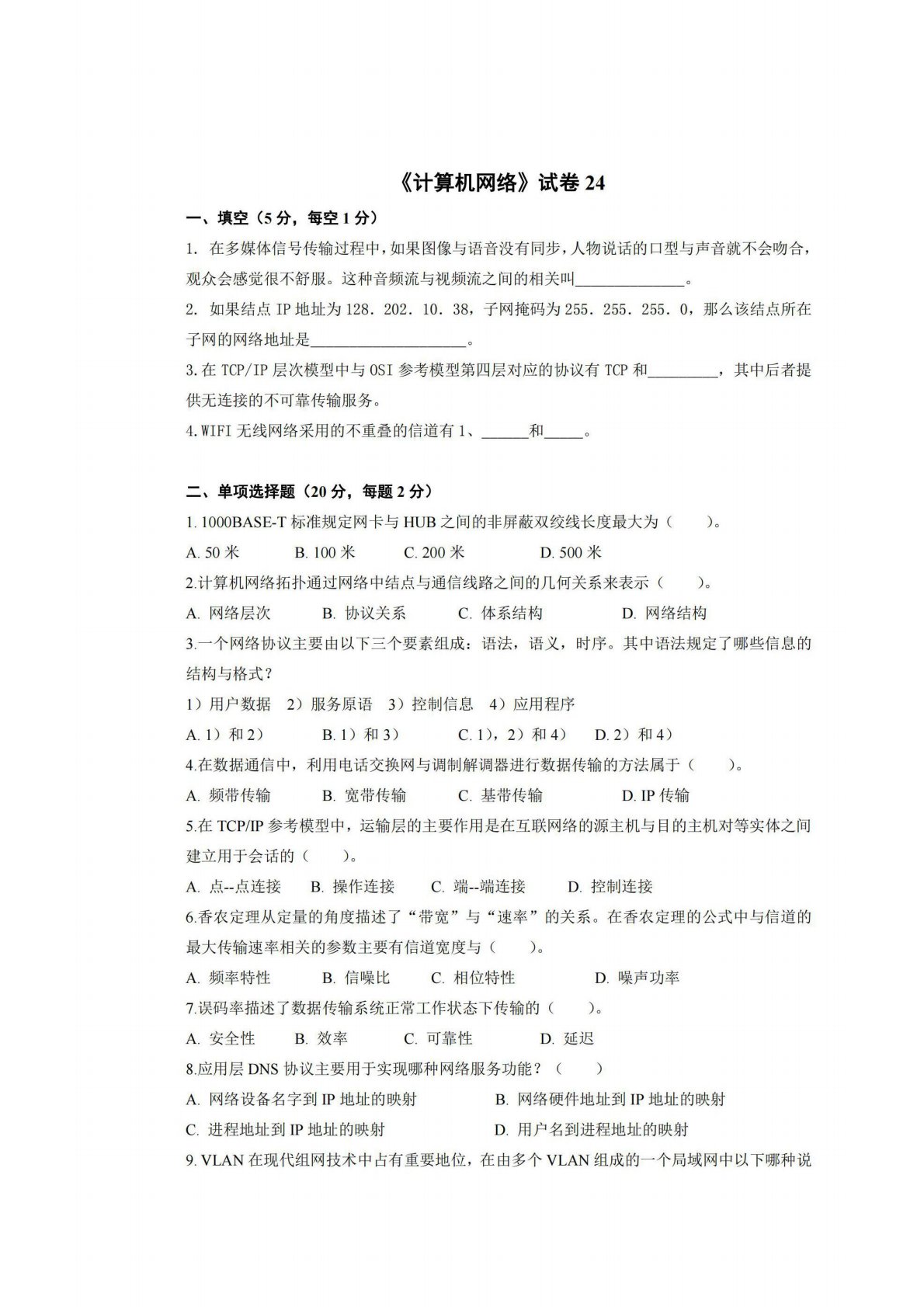 广西师范大学806计算机专业综合(含数据结构和计算机网络)试卷24