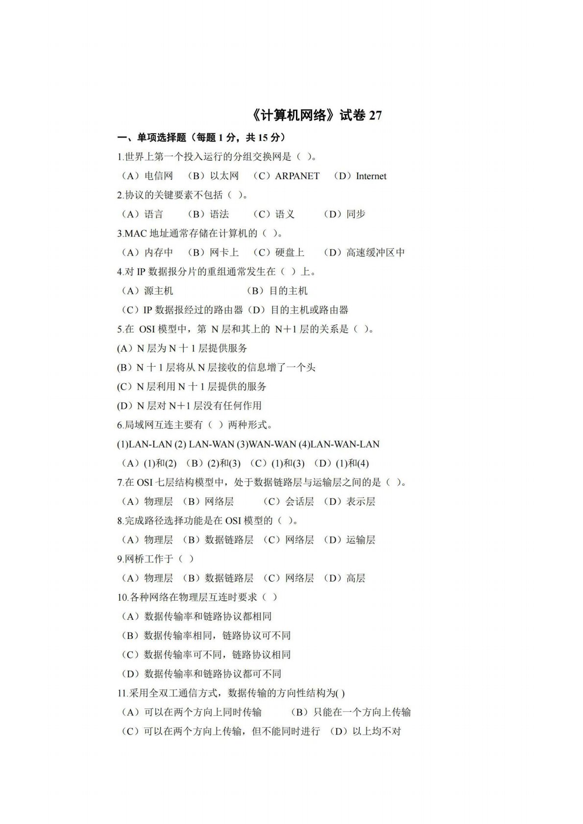 广西师范大学806计算机专业综合(含数据结构和计算机网络)试卷27