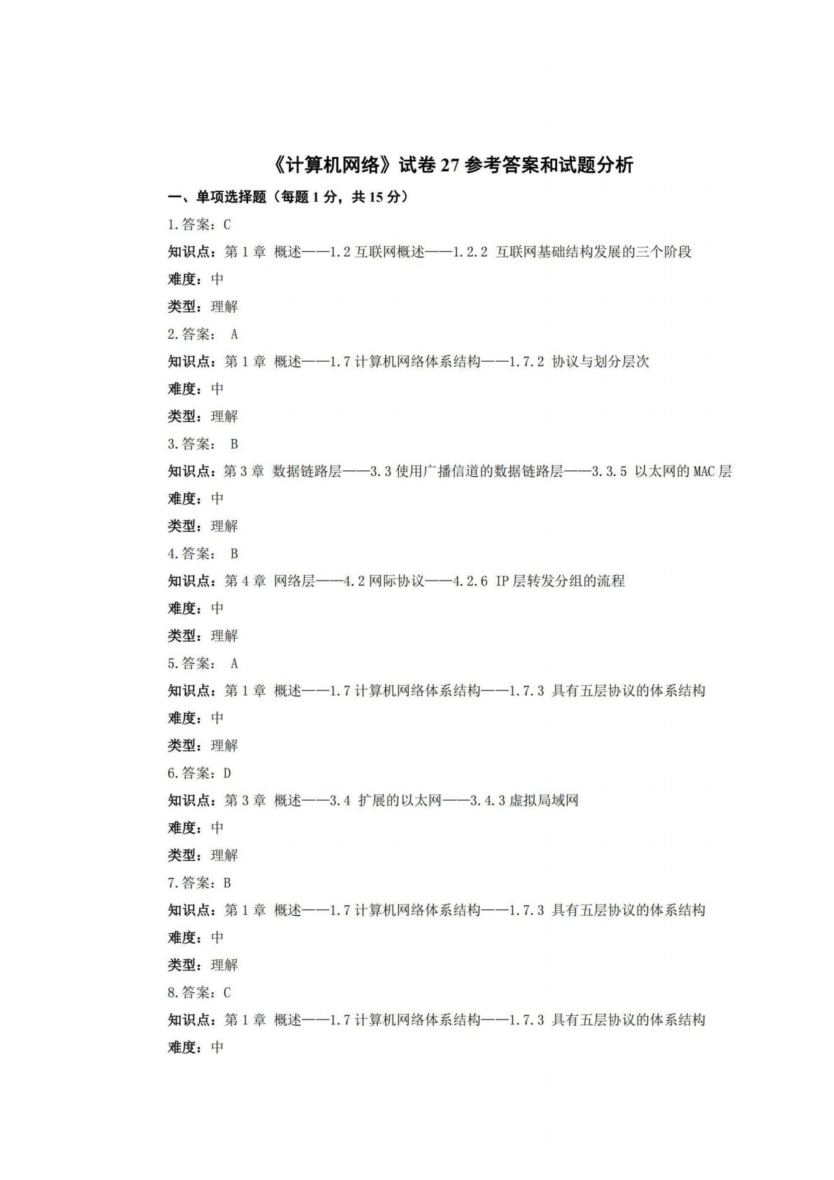 广西师范大学806计算机专业综合(含数据结构和计算机网络)试卷27答案