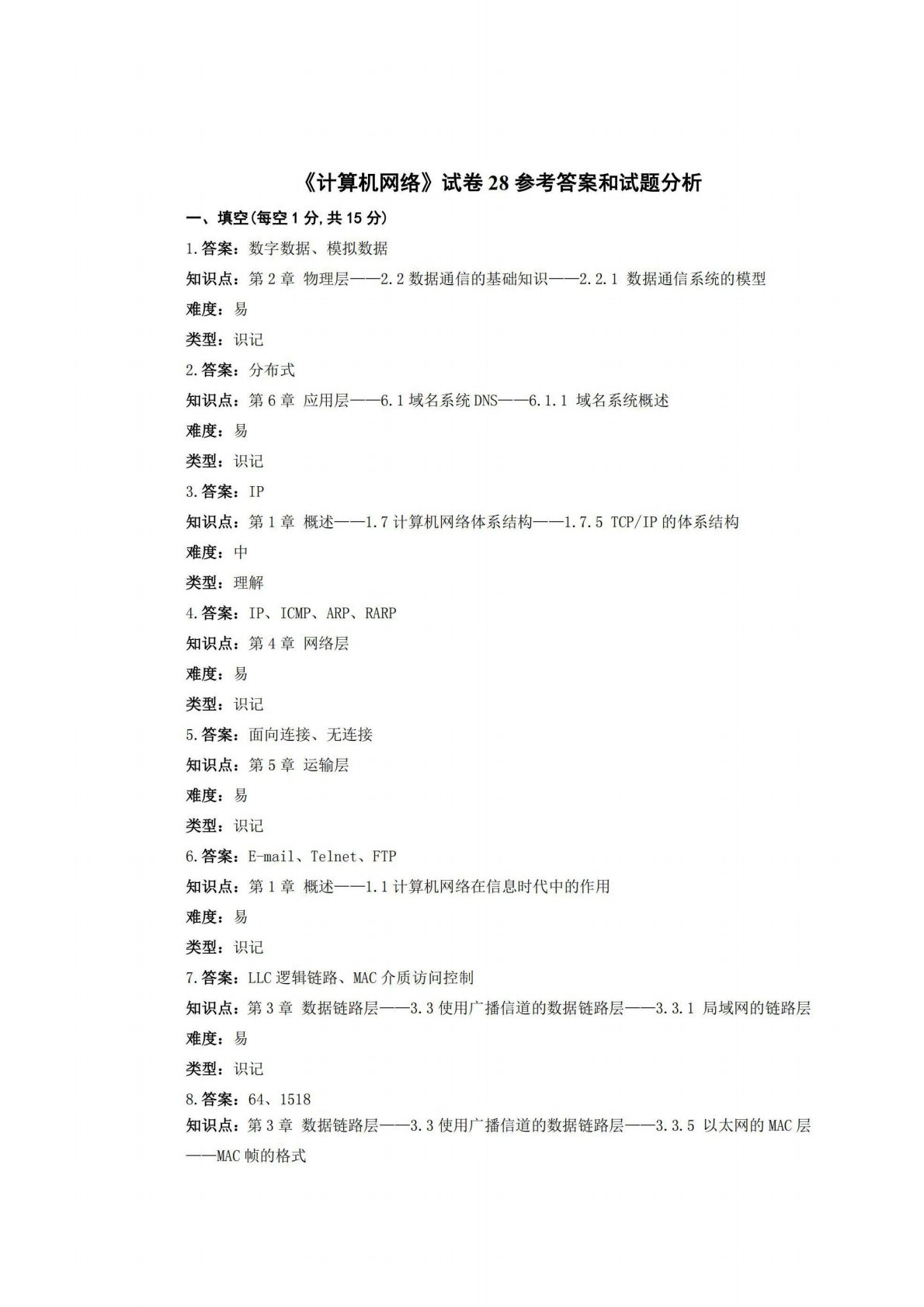 广西师范大学806计算机专业综合(含数据结构和计算机网络)试卷28答案