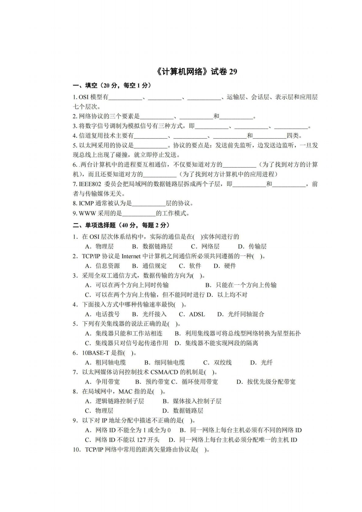 广西师范大学806计算机专业综合(含数据结构和计算机网络)试卷29