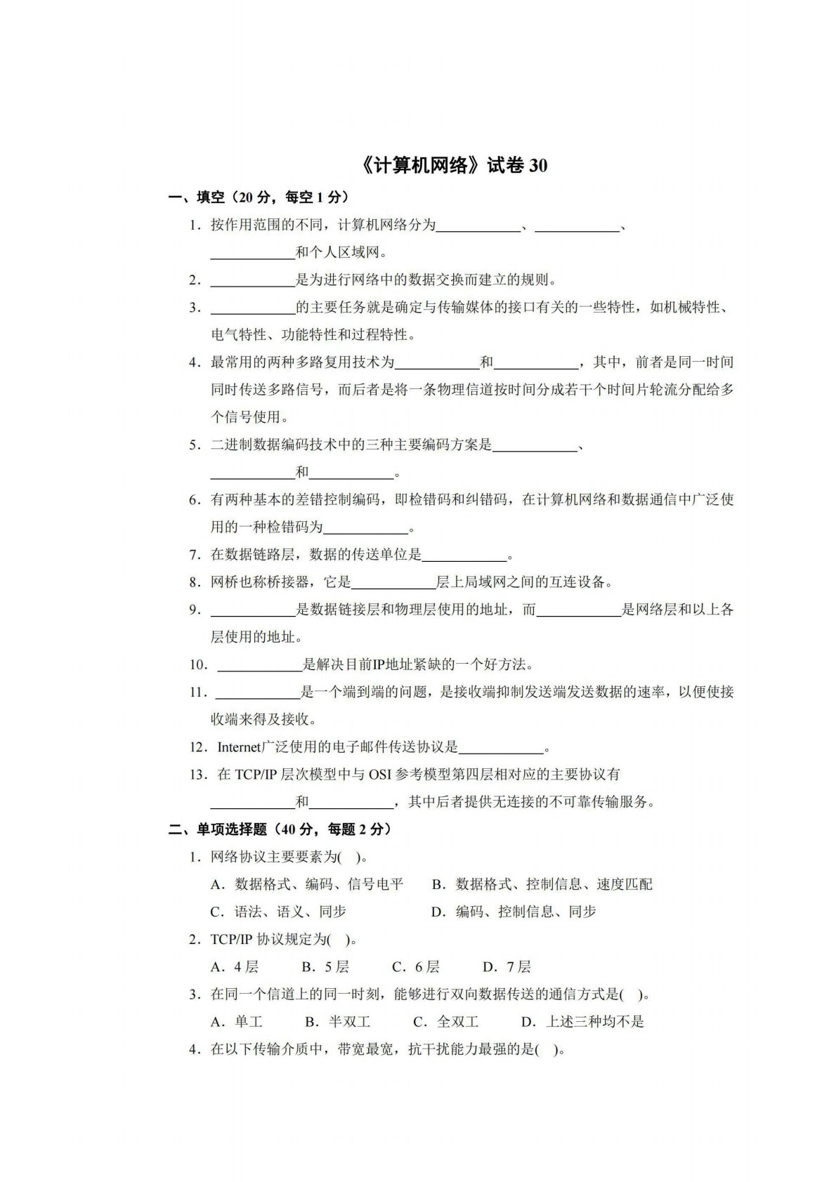 广西师范大学806计算机专业综合(含数据结构和计算机网络)试卷30