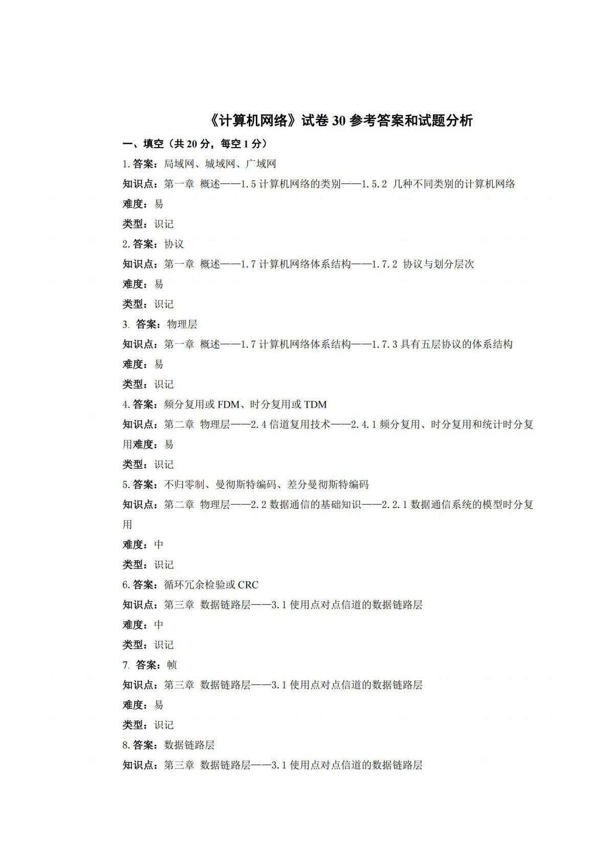 广西师范大学806计算机专业综合(含数据结构和计算机网络)试卷30答案