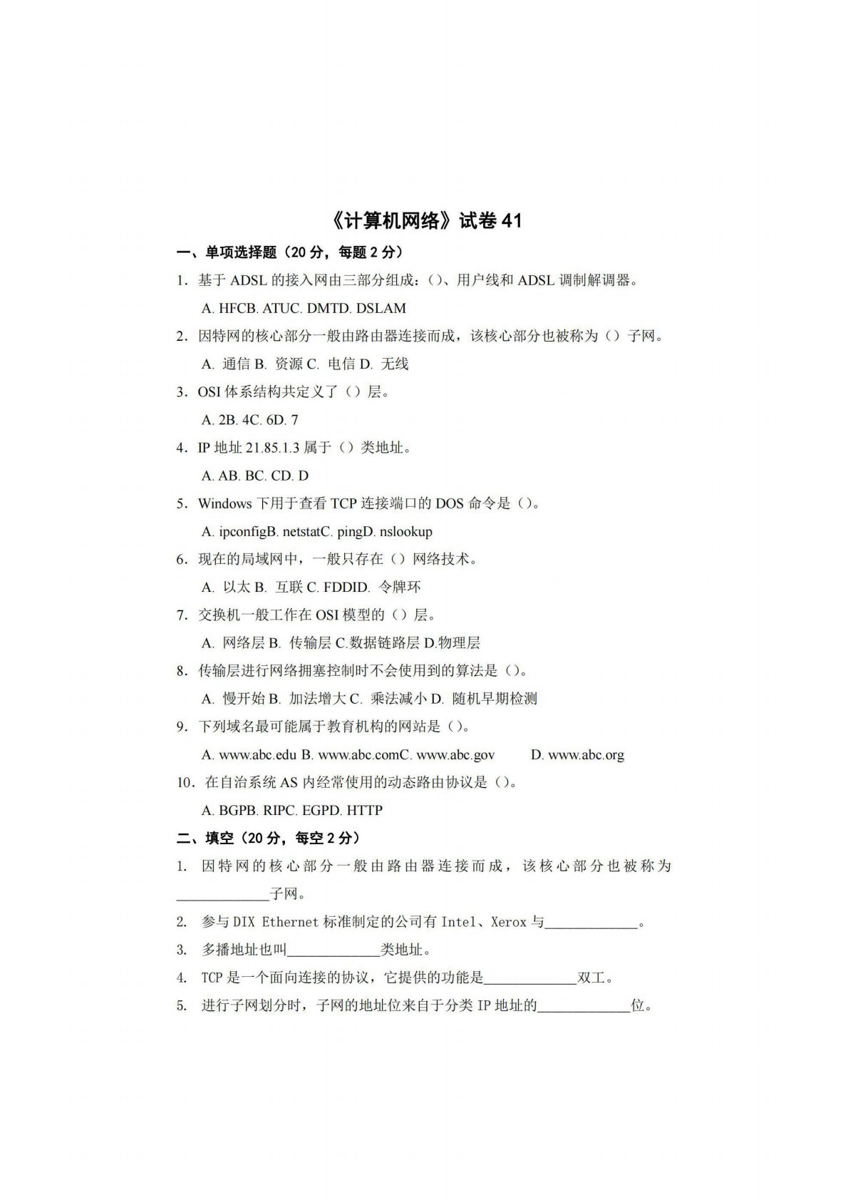 广西师范大学806计算机专业综合(含数据结构和计算机网络)试卷41
