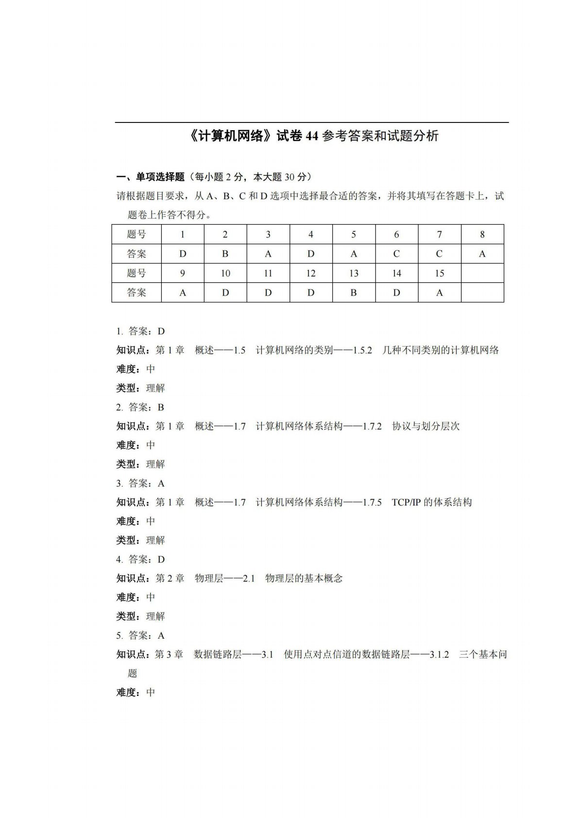 广西师范大学806计算机专业综合(含数据结构和计算机网络)试卷44答案