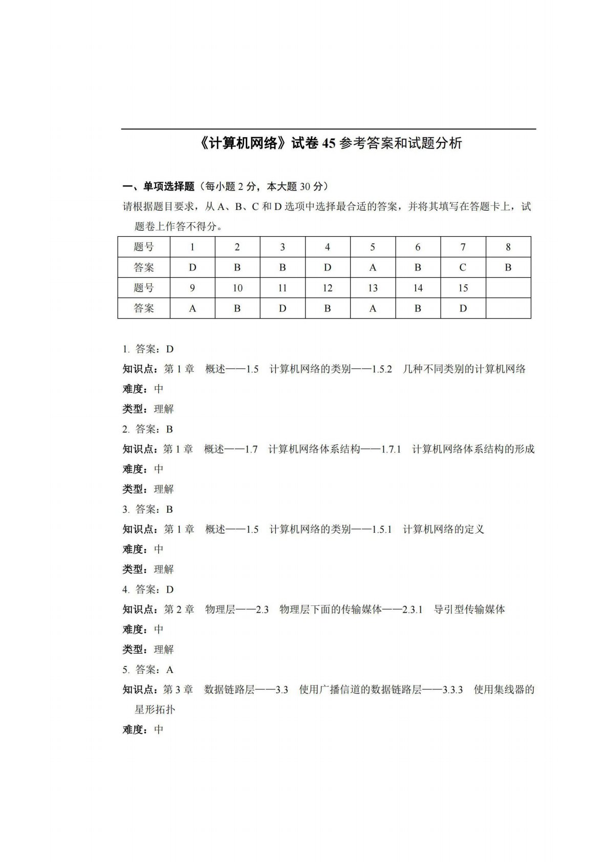 广西师范大学806计算机专业综合(含数据结构和计算机网络)试卷45答案