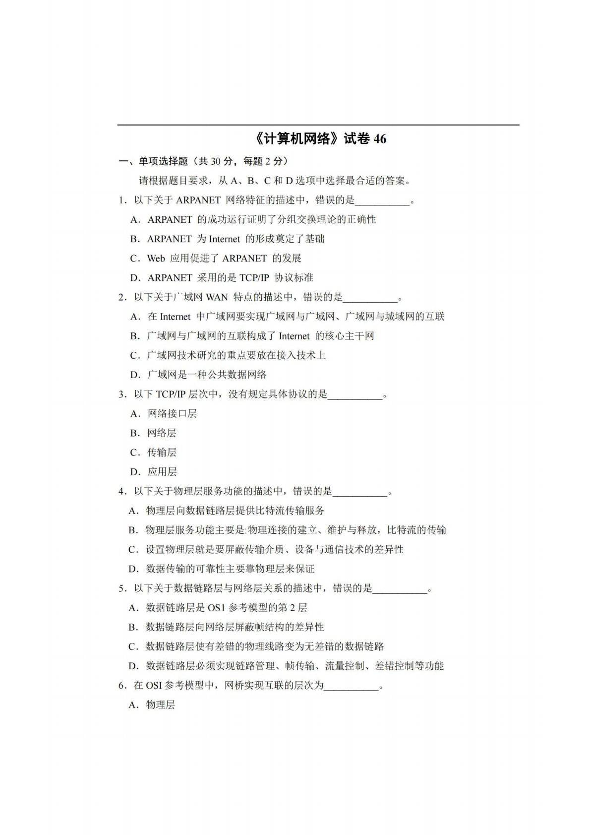 广西师范大学806计算机专业综合(含数据结构和计算机网络)试卷46
