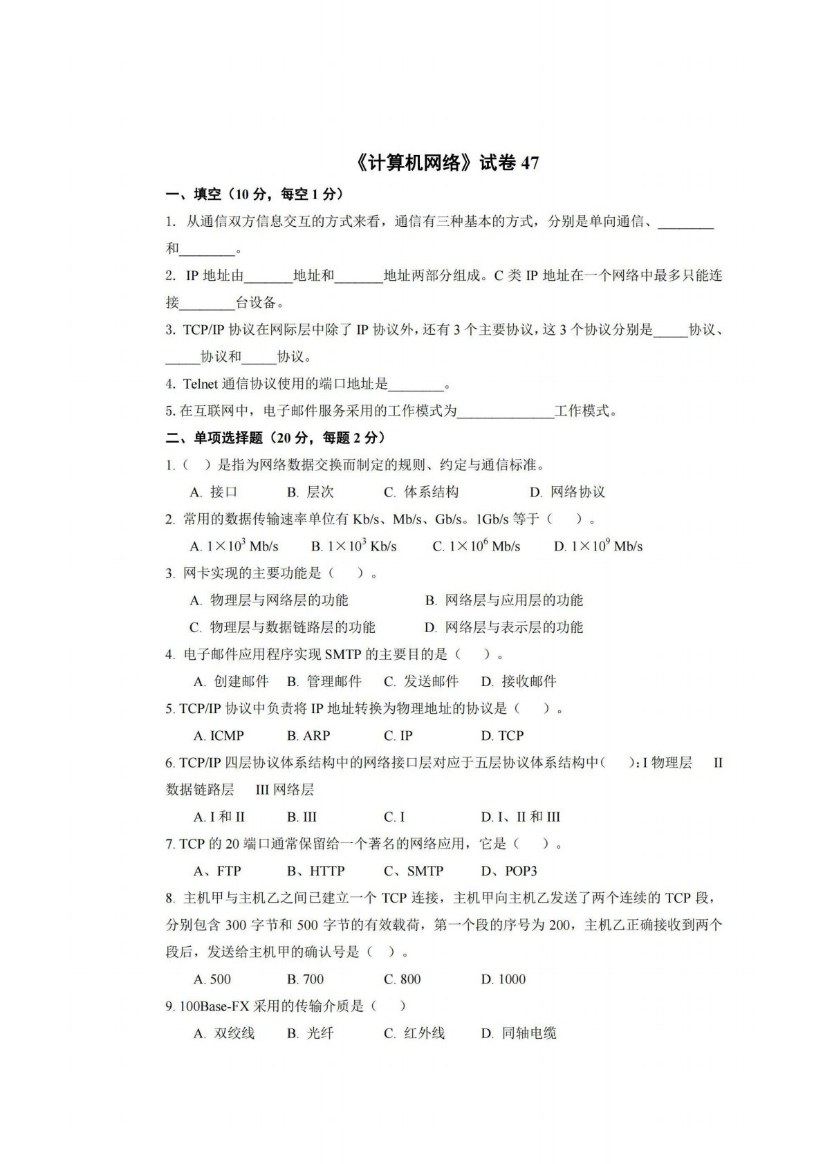 广西师范大学806计算机专业综合(含数据结构和计算机网络)试卷47
