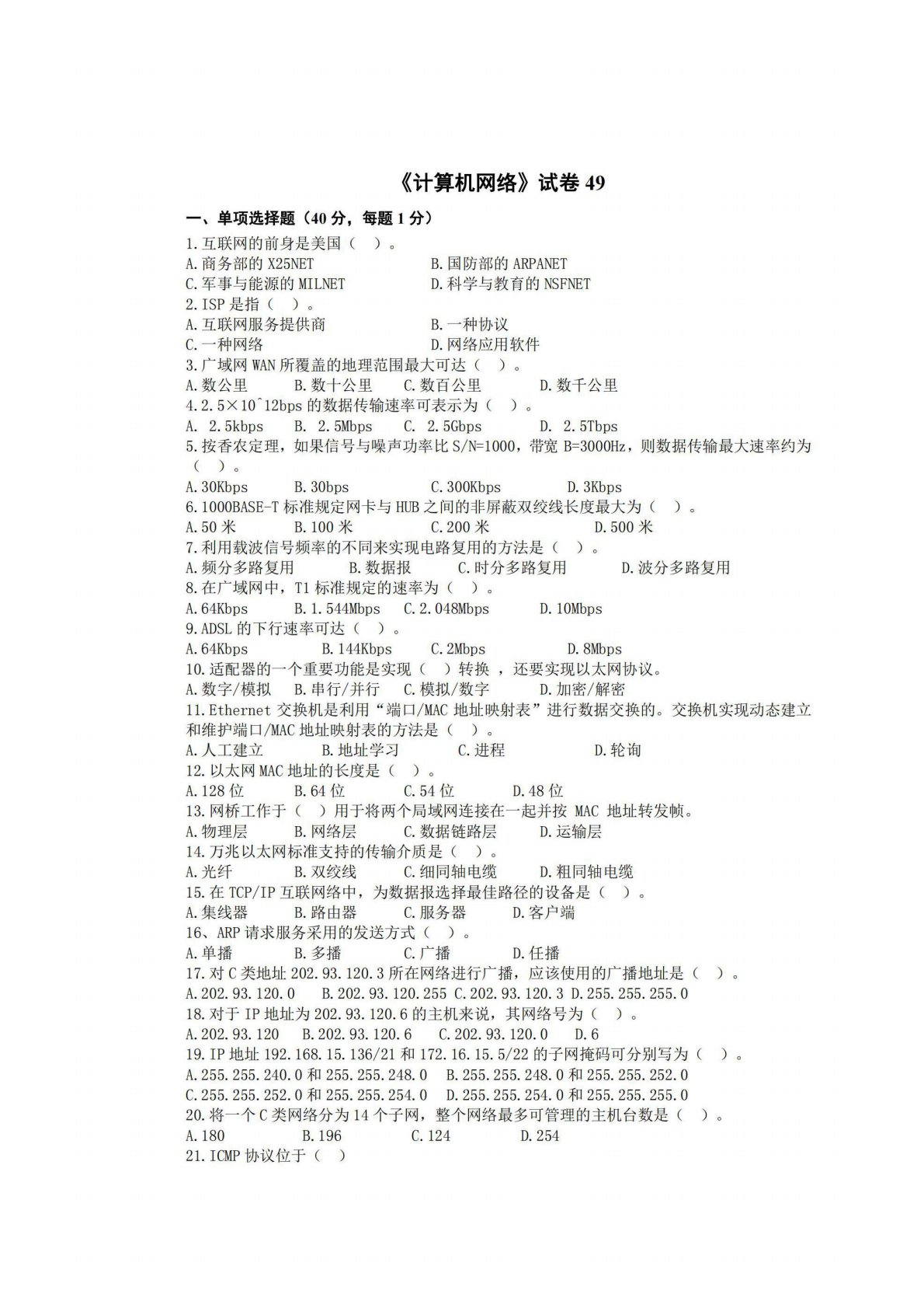 广西师范大学806计算机专业综合(含数据结构和计算机网络)试卷49