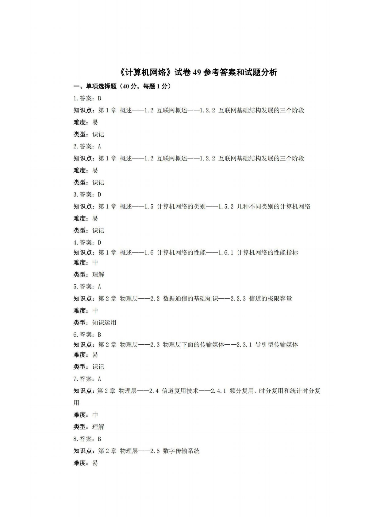 广西师范大学806计算机专业综合(含数据结构和计算机网络)试卷49答案