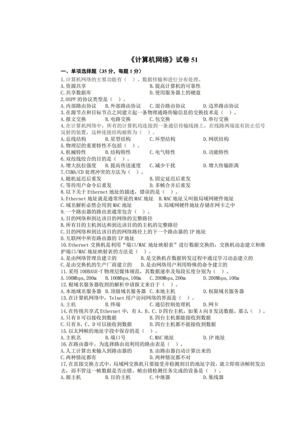 广西师范大学806计算机专业综合(含数据结构和计算机网络)试卷51