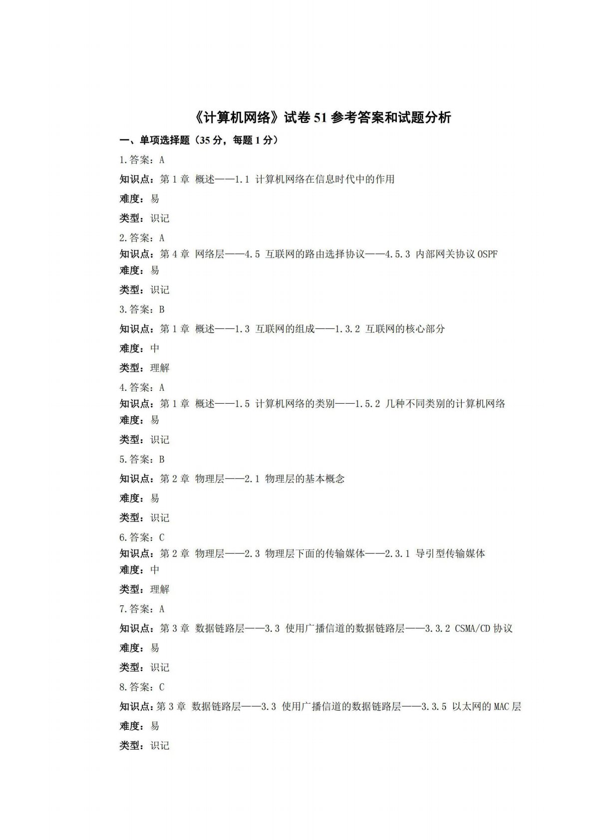 广西师范大学806计算机专业综合(含数据结构和计算机网络)试卷51答案