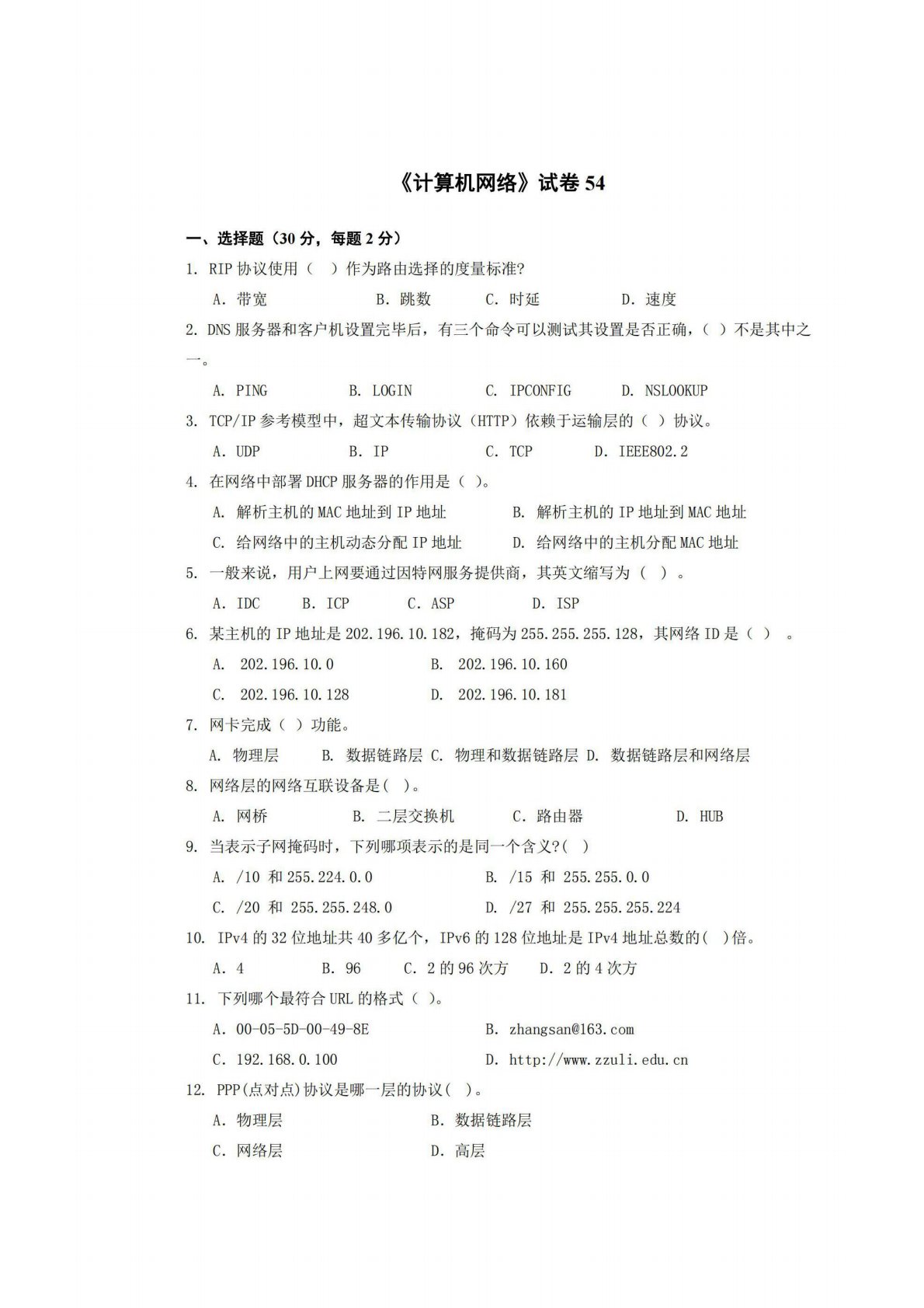 广西师范大学806计算机专业综合(含数据结构和计算机网络)试卷54