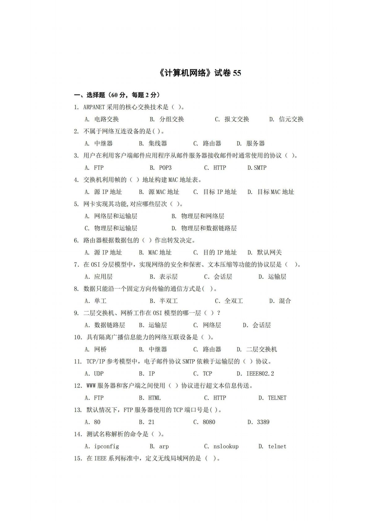 广西师范大学806计算机专业综合(含数据结构和计算机网络)试卷55