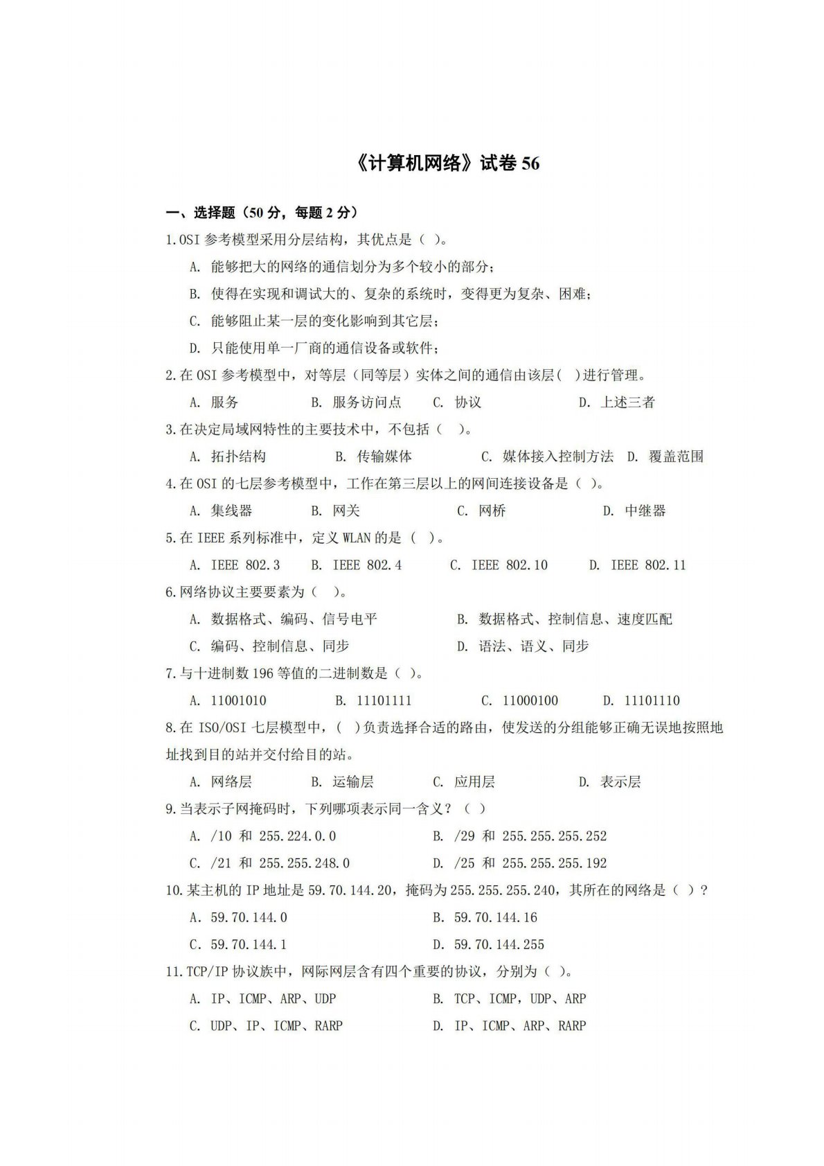 广西师范大学806计算机专业综合(含数据结构和计算机网络)试卷56