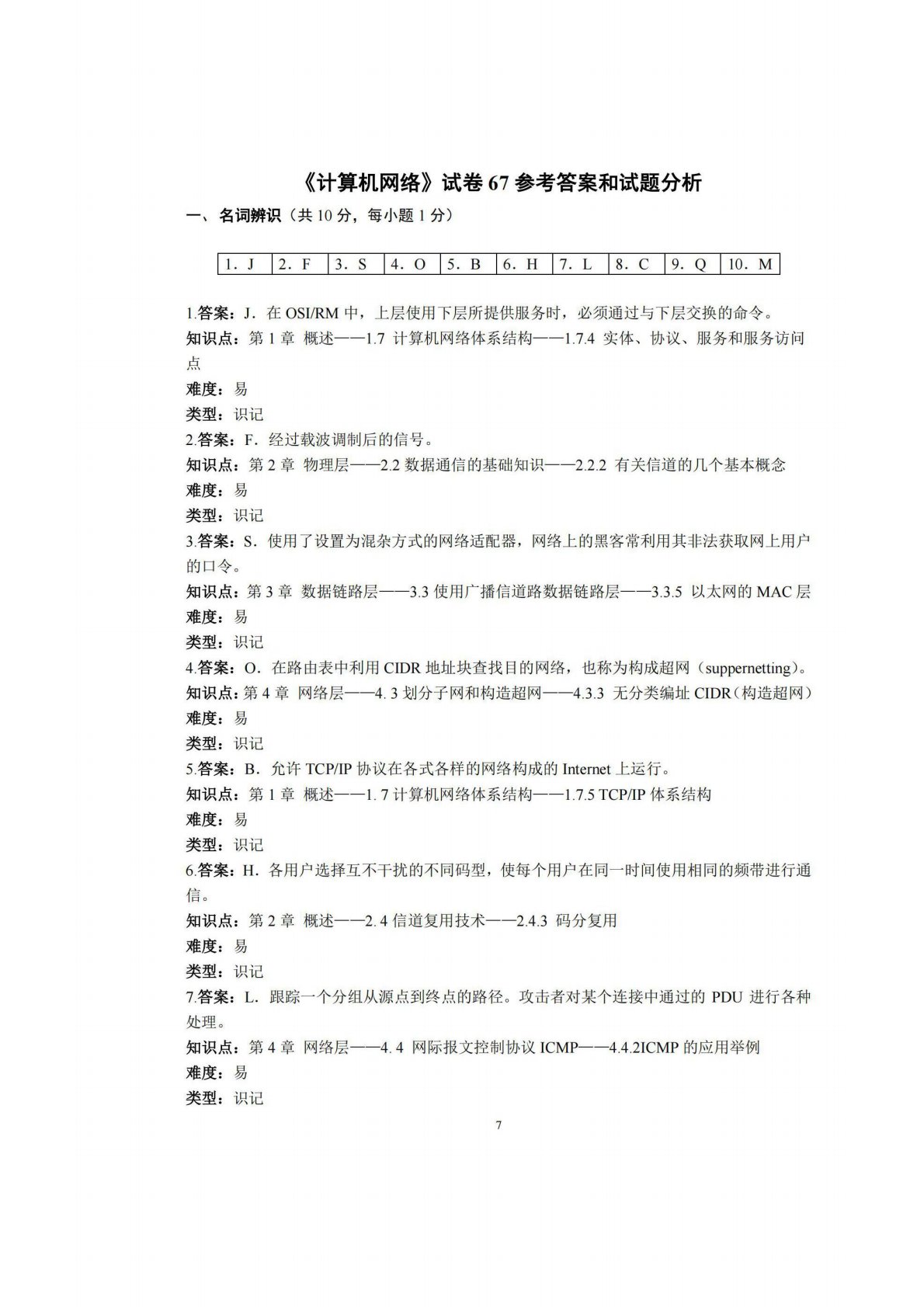 广西师范大学806计算机专业综合(含数据结构和计算机网络)试卷67答案