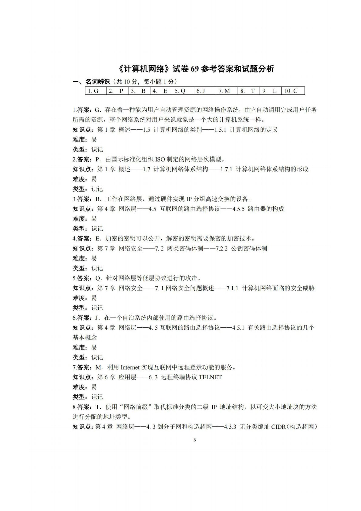 广西师范大学806计算机专业综合(含数据结构和计算机网络)试卷69答案