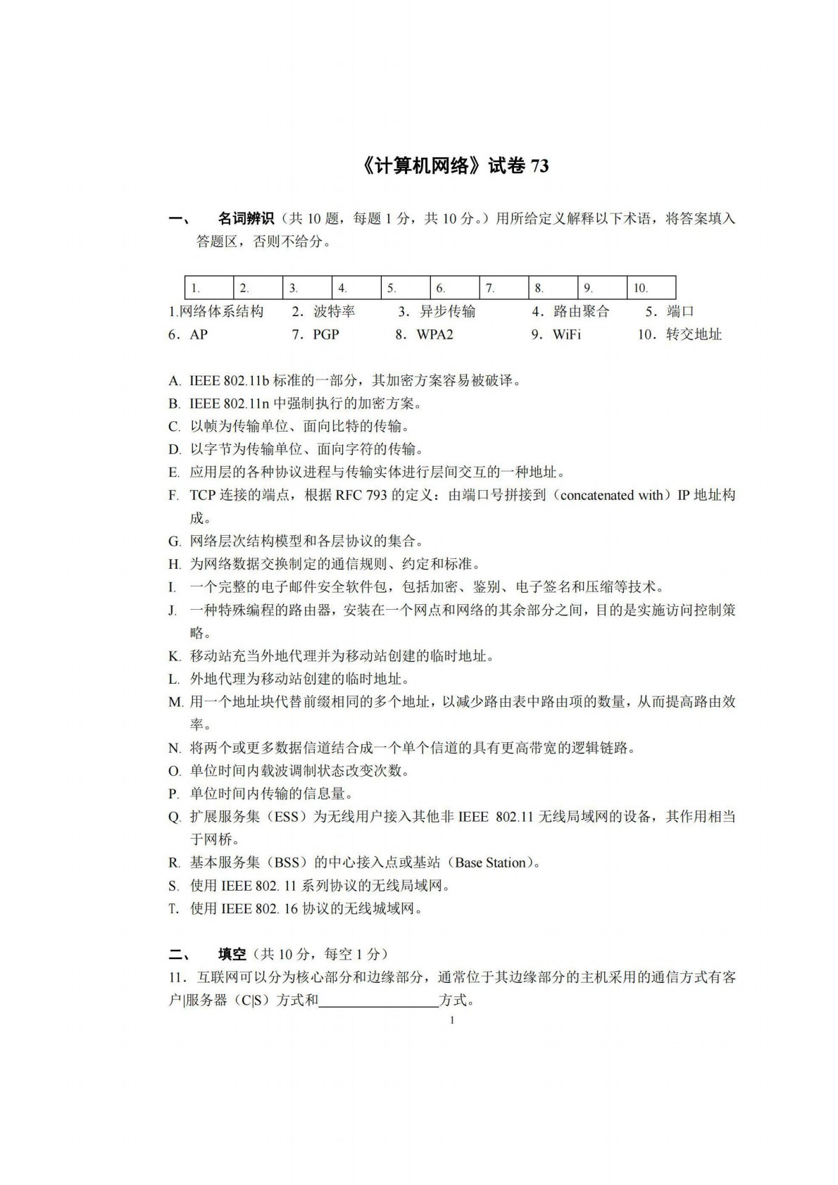 广西师范大学806计算机专业综合(含数据结构和计算机网络)试卷73