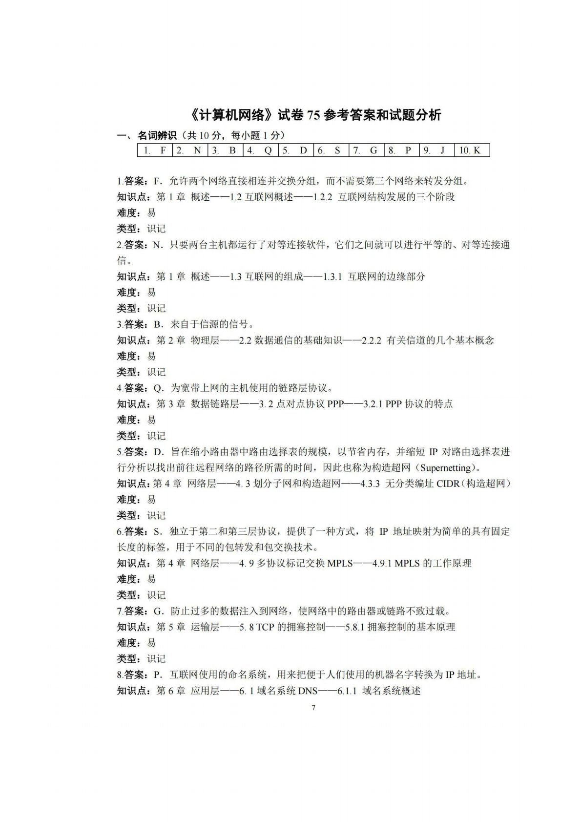 广西师范大学806计算机专业综合(含数据结构和计算机网络)试卷75答案