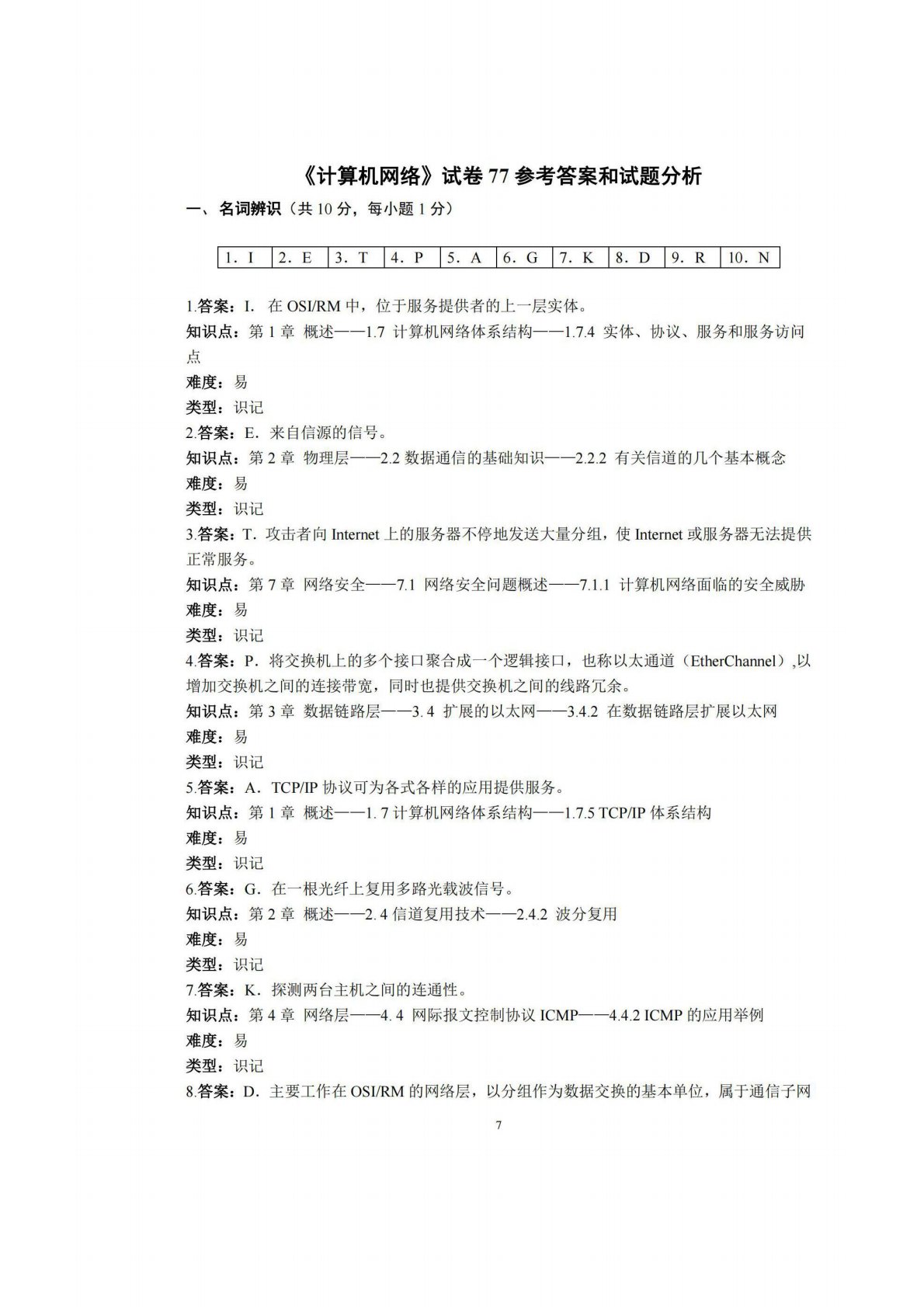 广西师范大学806计算机专业综合(含数据结构和计算机网络)试卷77答案