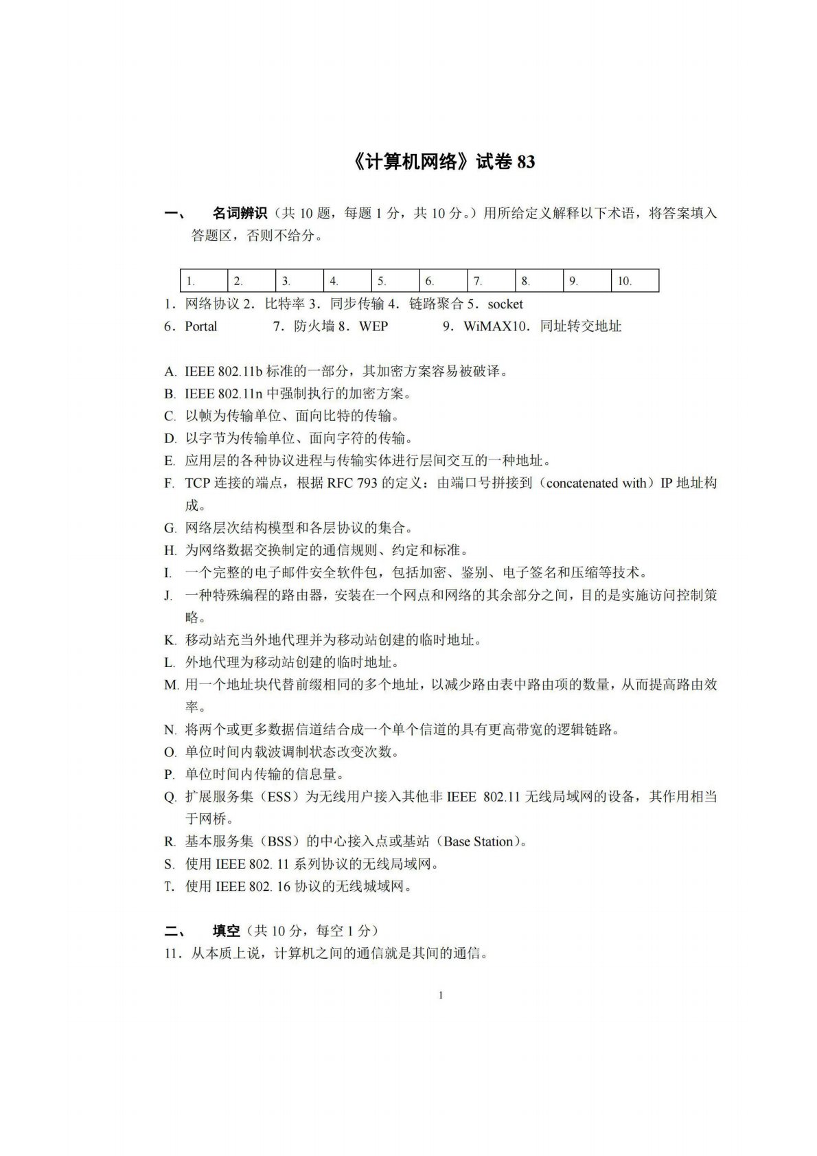 广西师范大学806计算机专业综合(含数据结构和计算机网络)试卷83