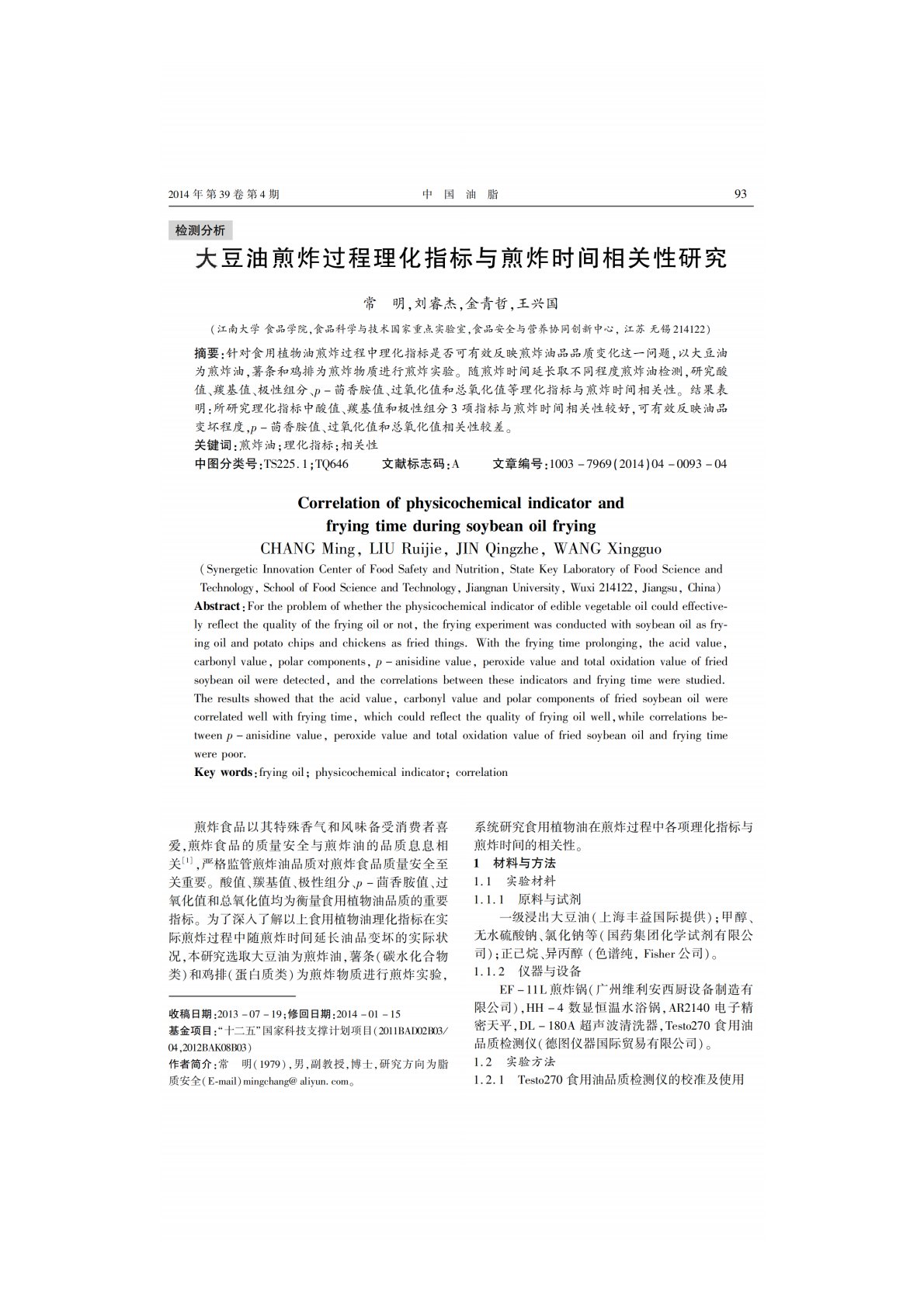 华南农业大学819食品化学大豆油煎炸过程理化指标与煎炸时间相关性研究