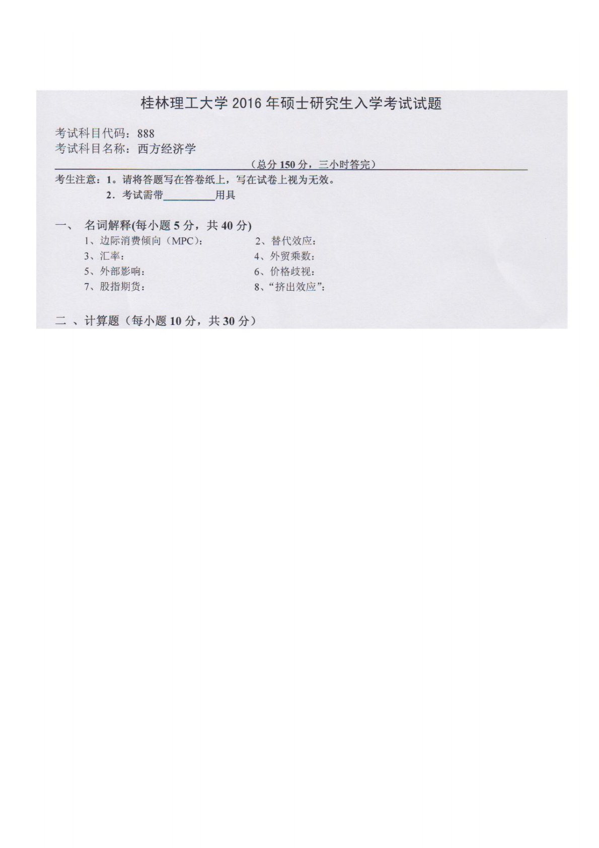 桂林理工大学888西方经济学2016年真题