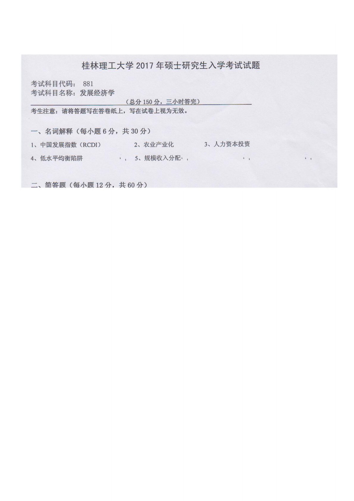 桂林理工大学发展经济学2017年真题