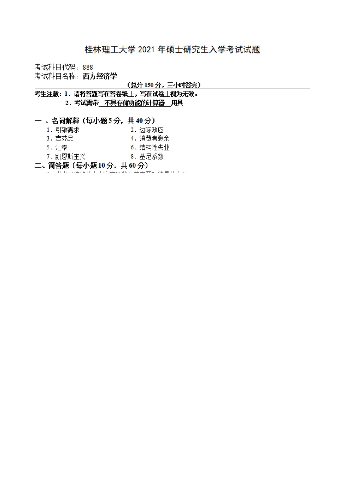 桂林理工大学888西方经济学2021年真题