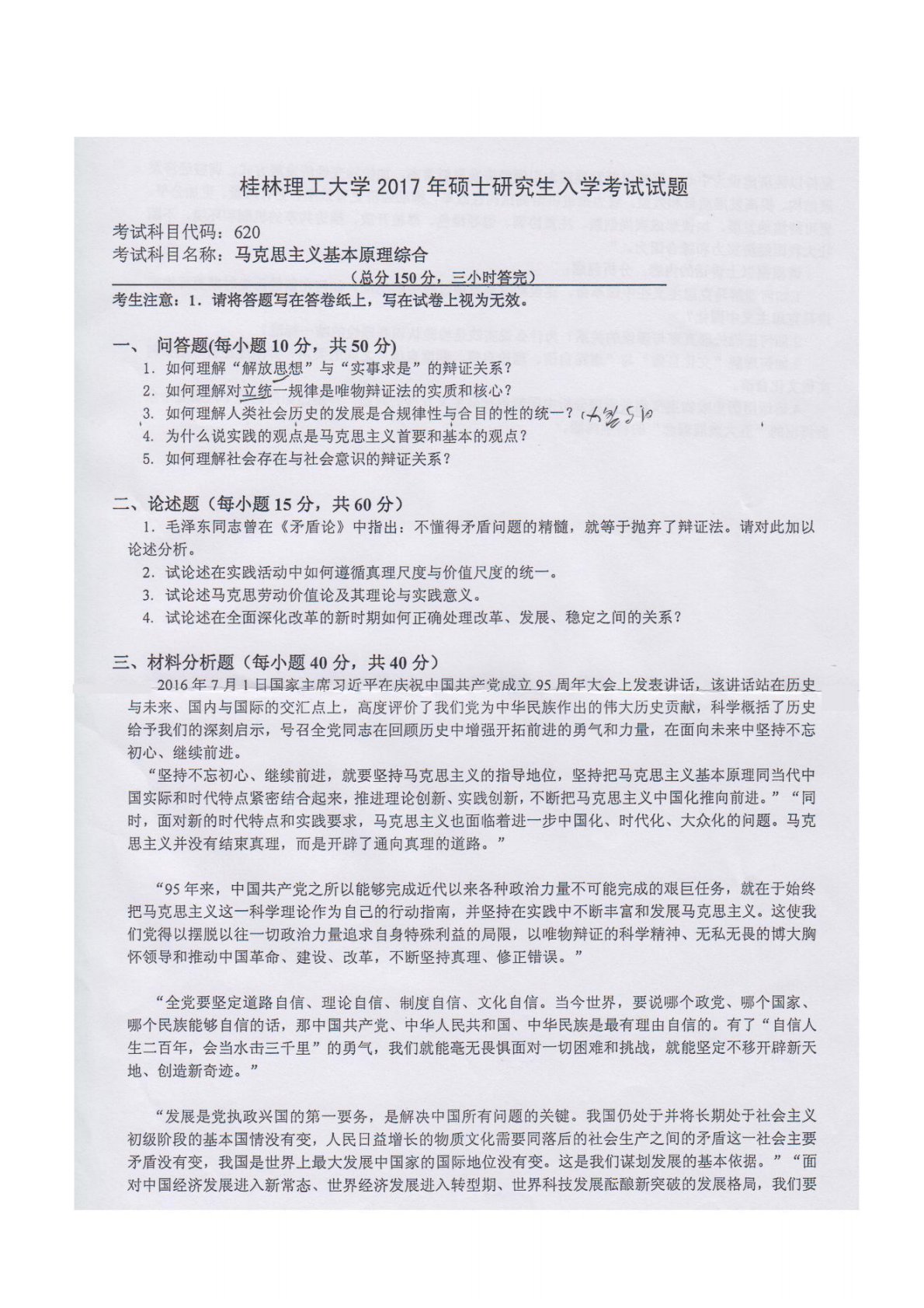 桂林理工大学620马克思主义基本原理综合2017年真题