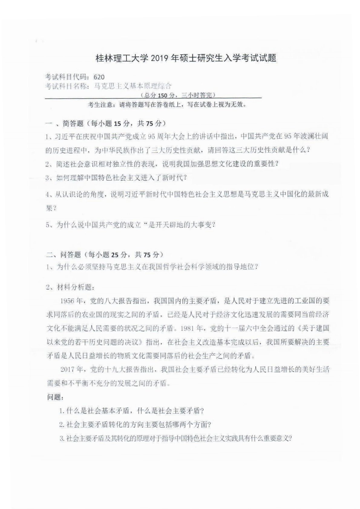 桂林理工大学620马克思主义基本原理综合2019年真题