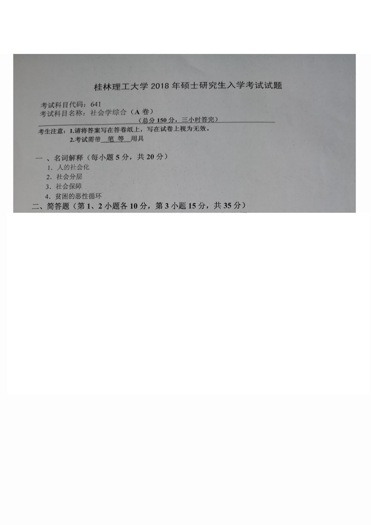 桂林理工大学641社会学综合2018年真题