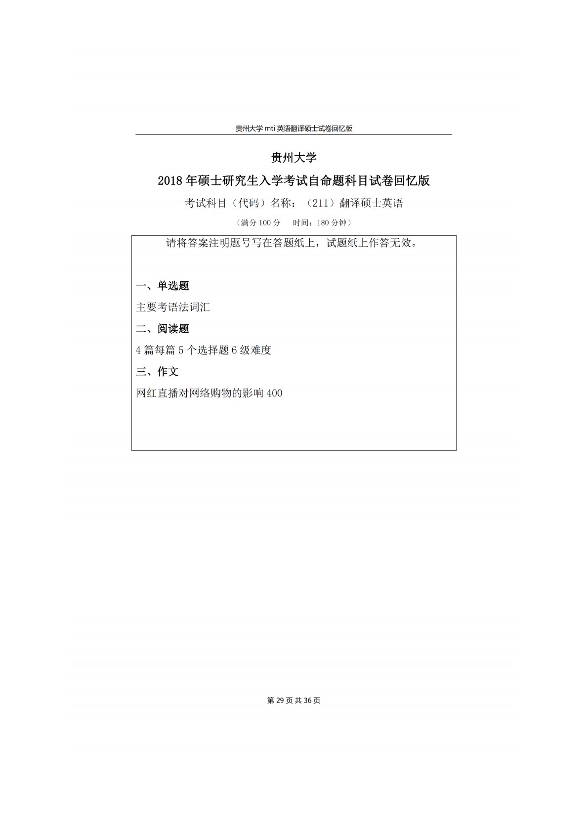 贵州大学211翻译硕士(英语)2018年真题回忆版