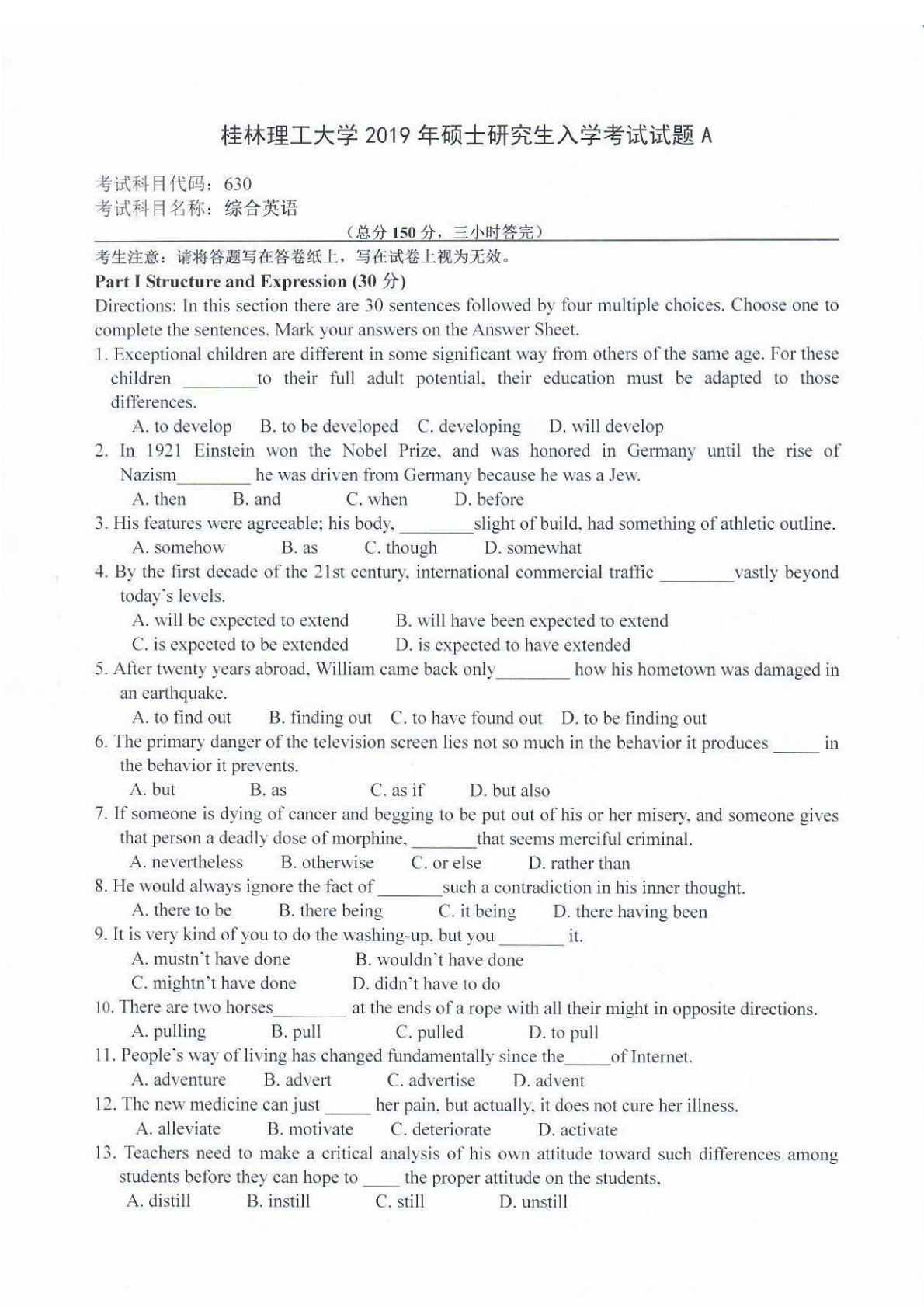 桂林理工大学631专业基础2019年真题
