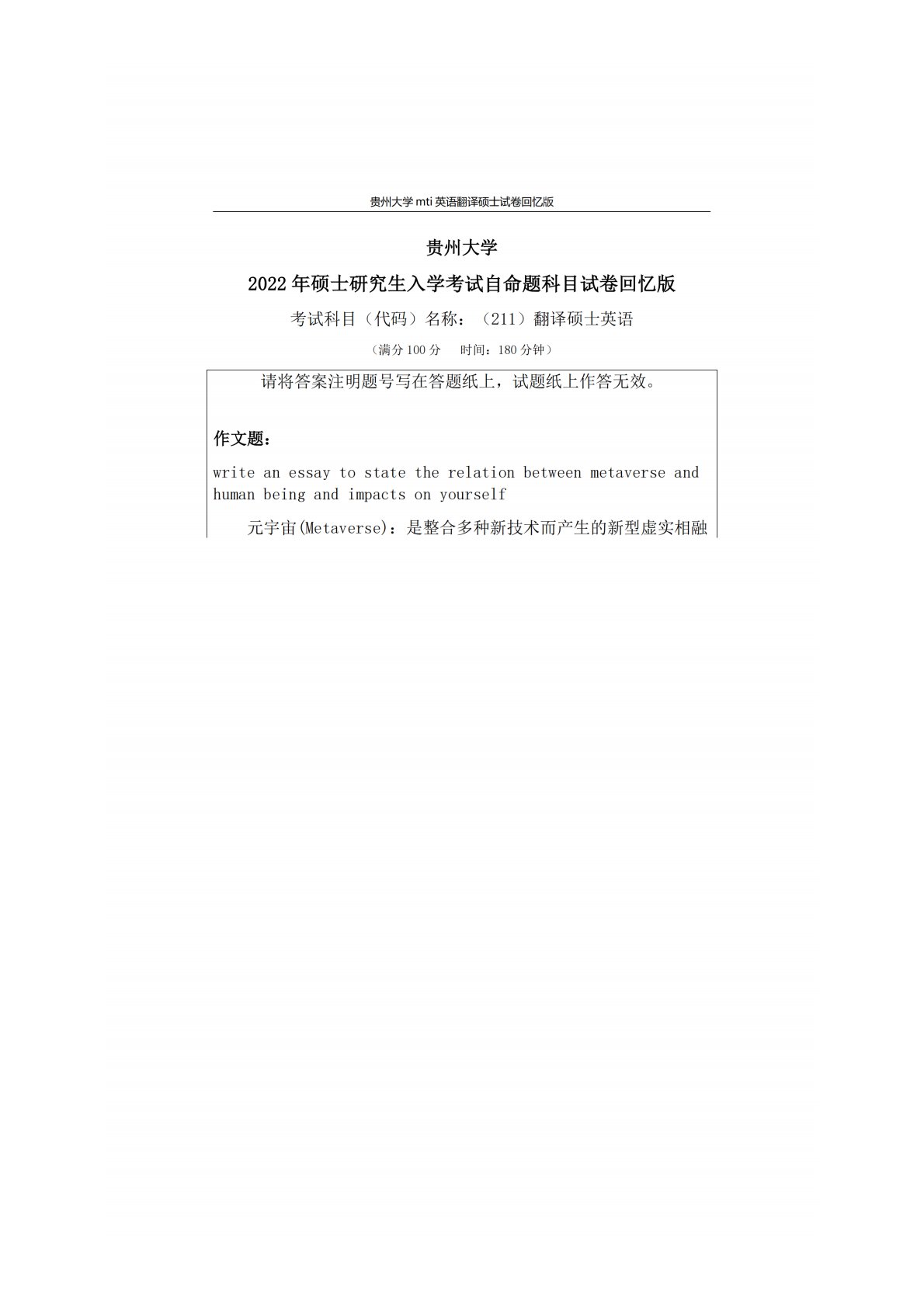 贵州大学211翻译硕士(英语)2022年真题回忆版