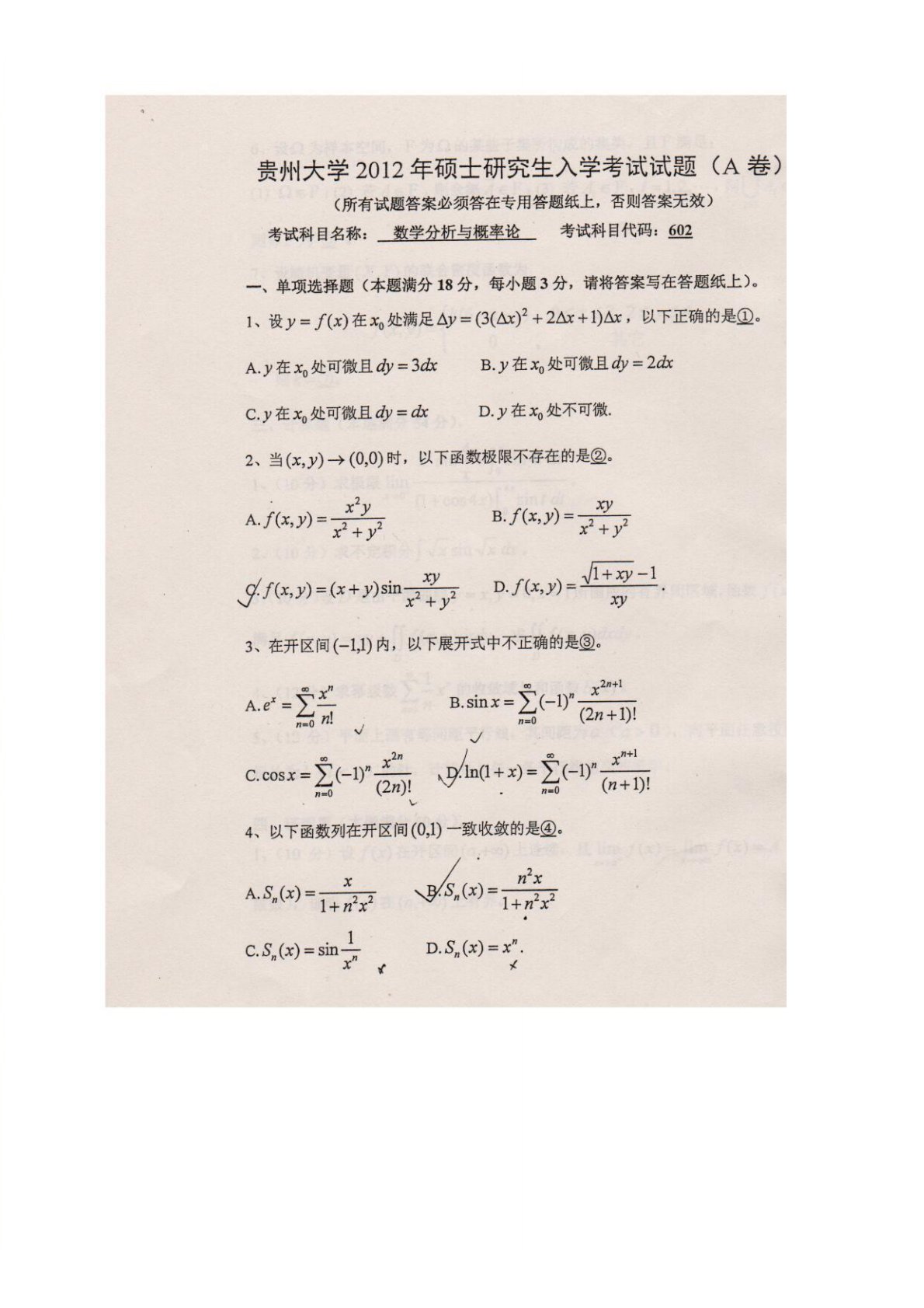 贵州大学623数学分析2012年真题A