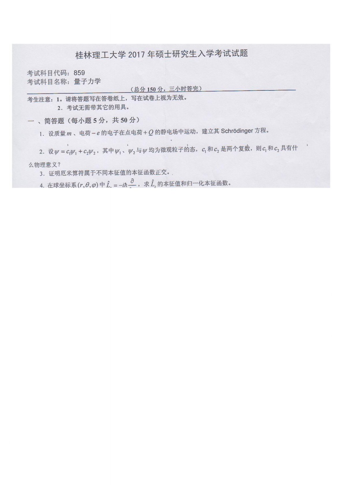 桂林理工大学859普通物理2017年真题