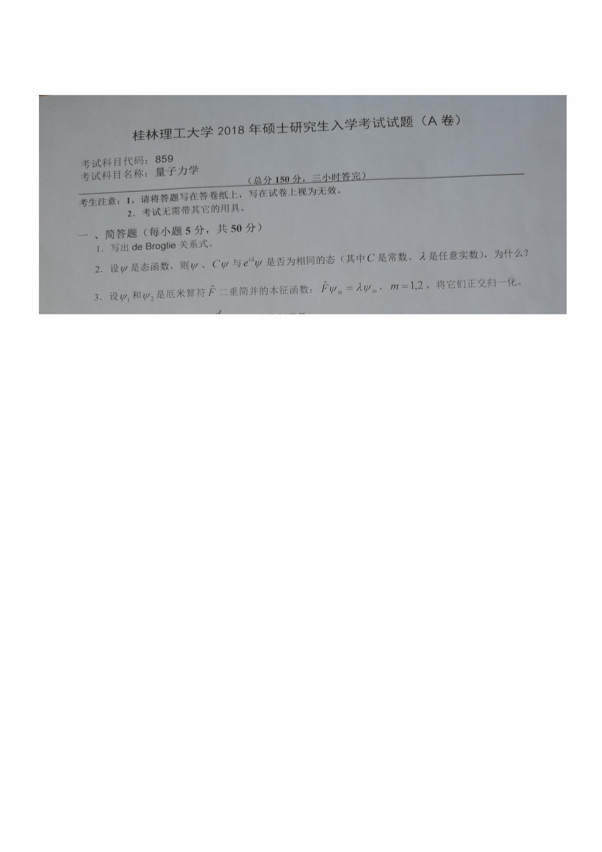 桂林理工大学859普通物理2018年真题