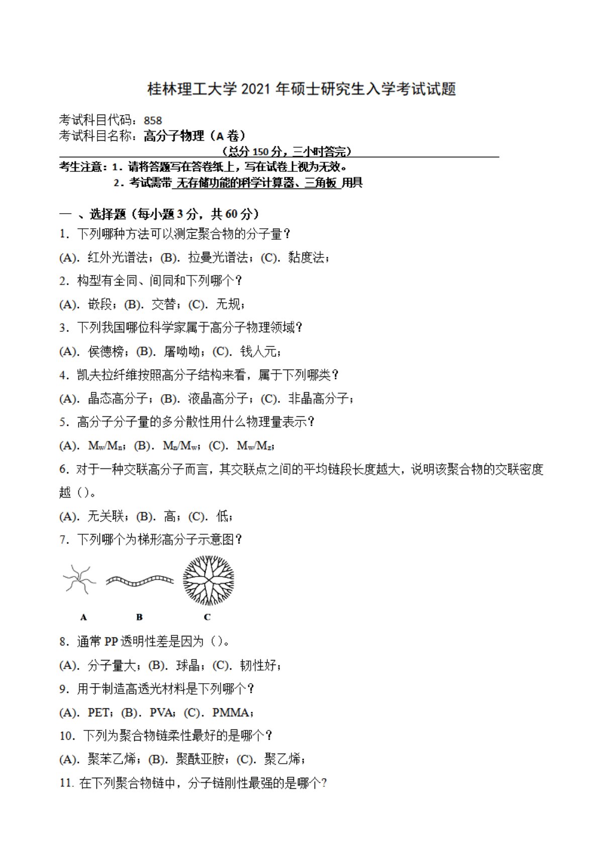 桂林理工大学858高分子物理2021年真题
