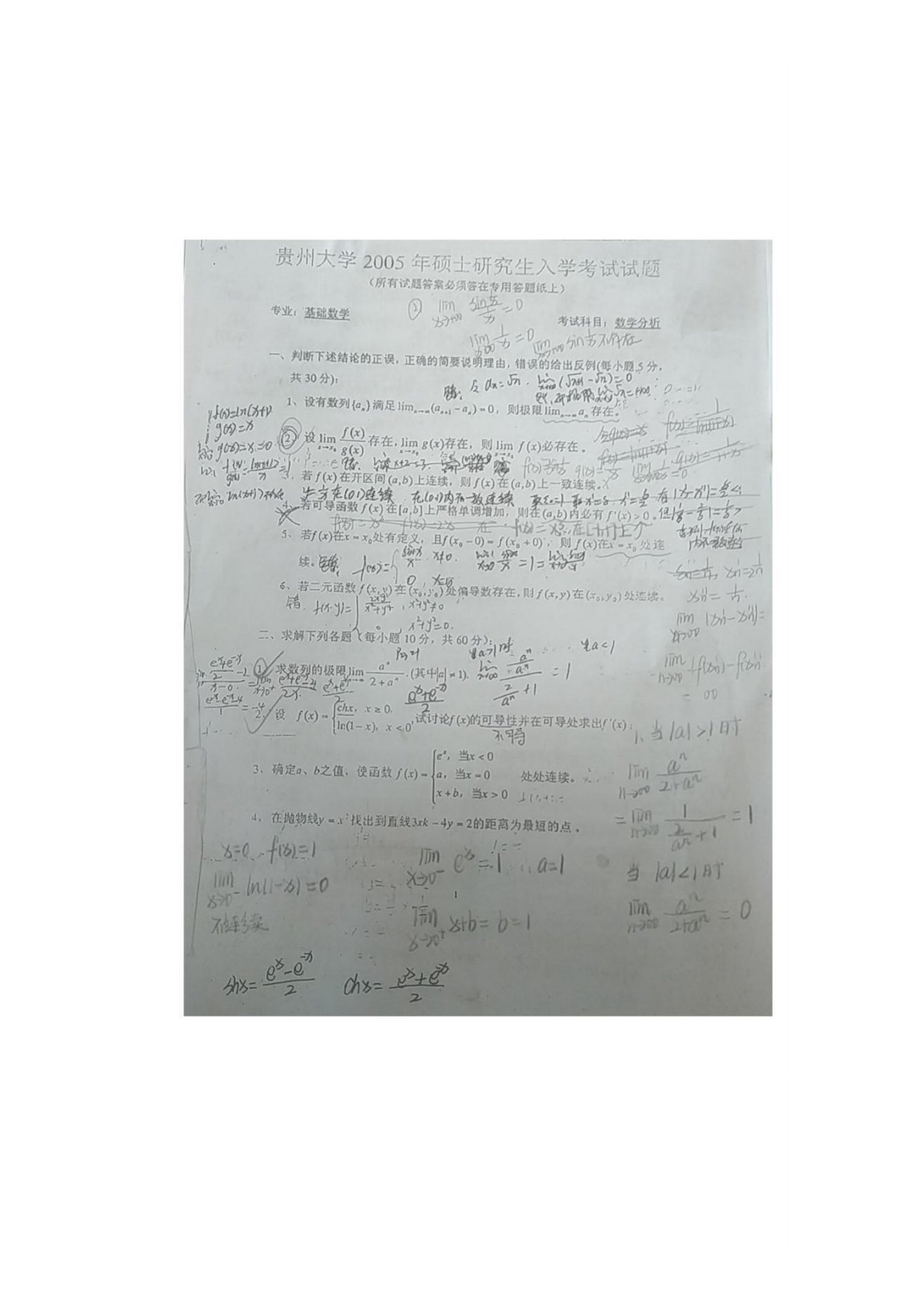 贵州大学623数学分析2005年真题答案