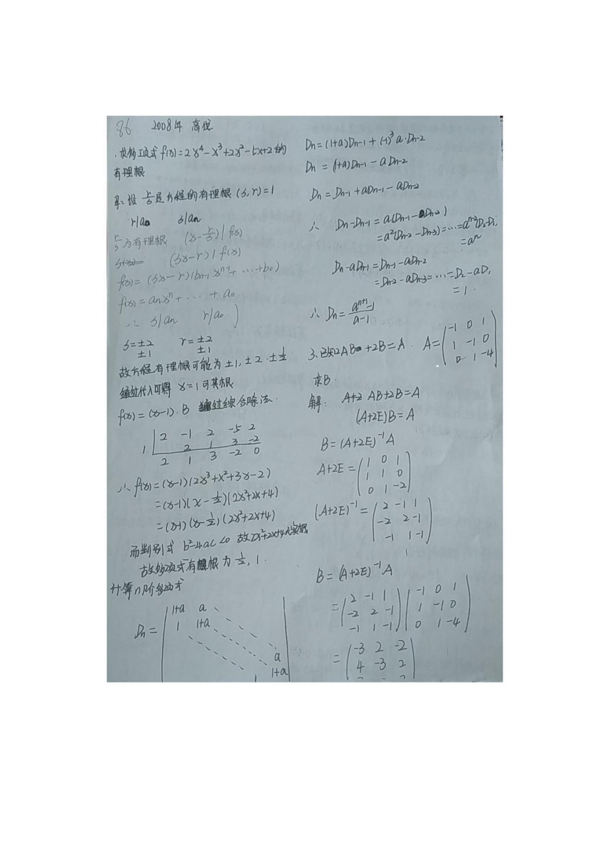 贵州大学818高等代数2008年真题答案