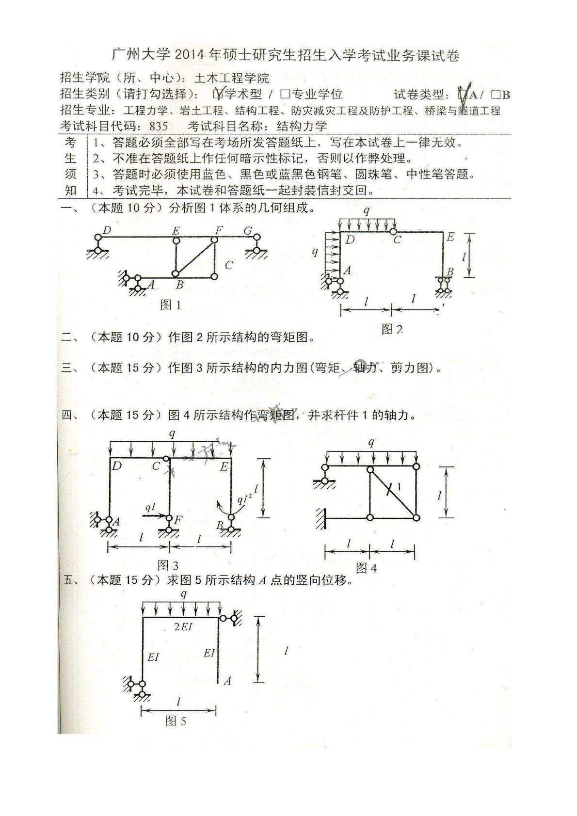广州大学839结构力学(学硕)2014年真题