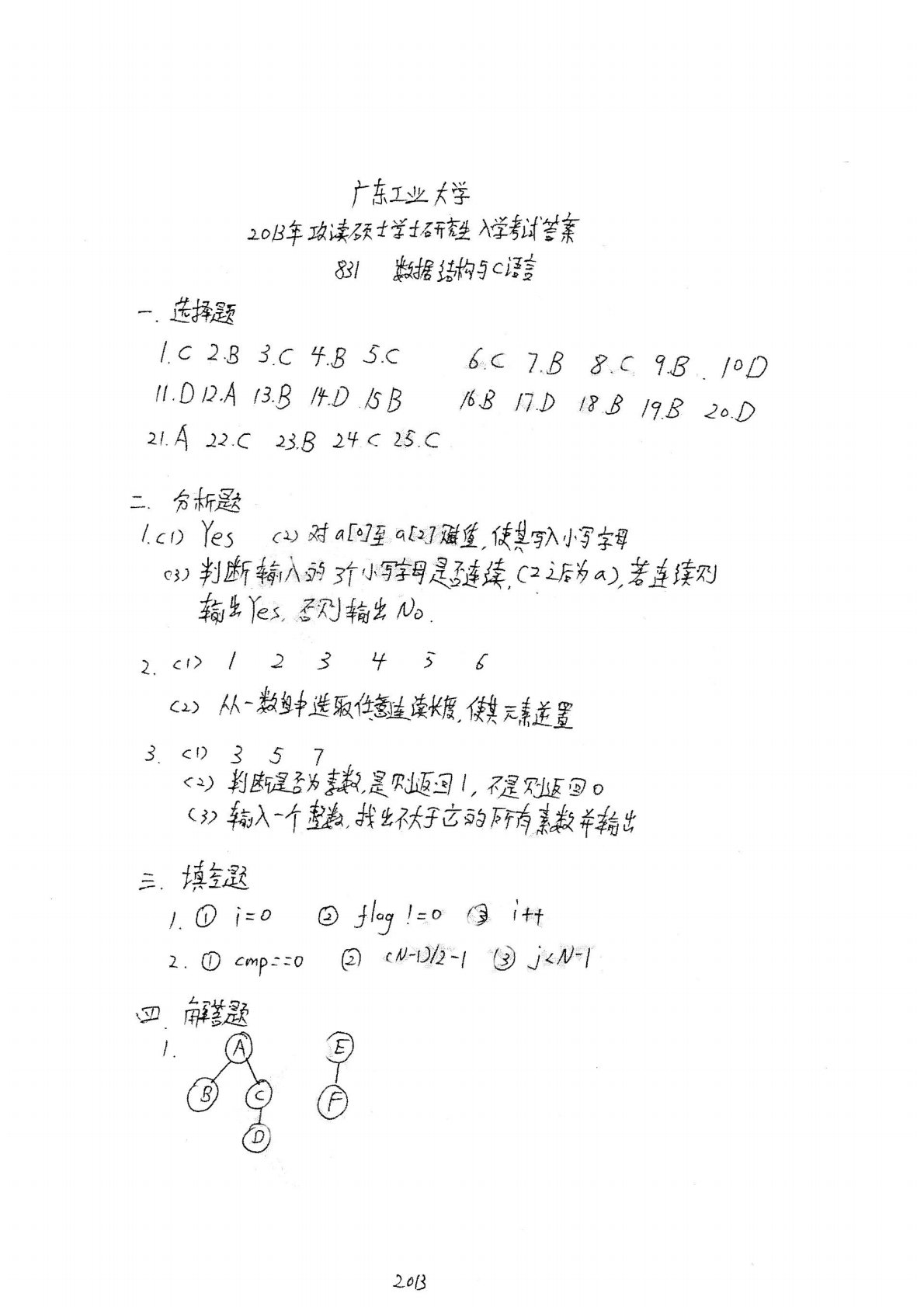 广东工业大学873C语言程序设计2013年真题答案