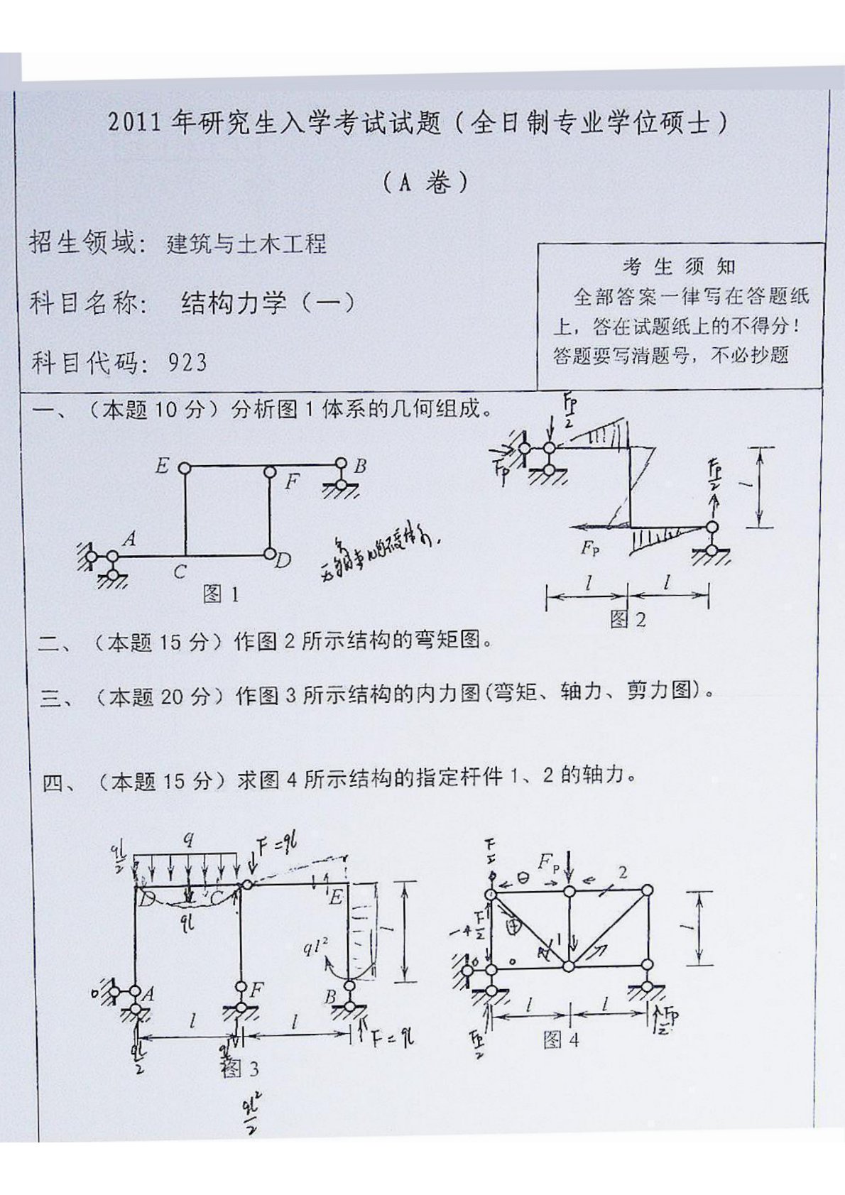 广州大学839结构力学(专硕)2011年真题