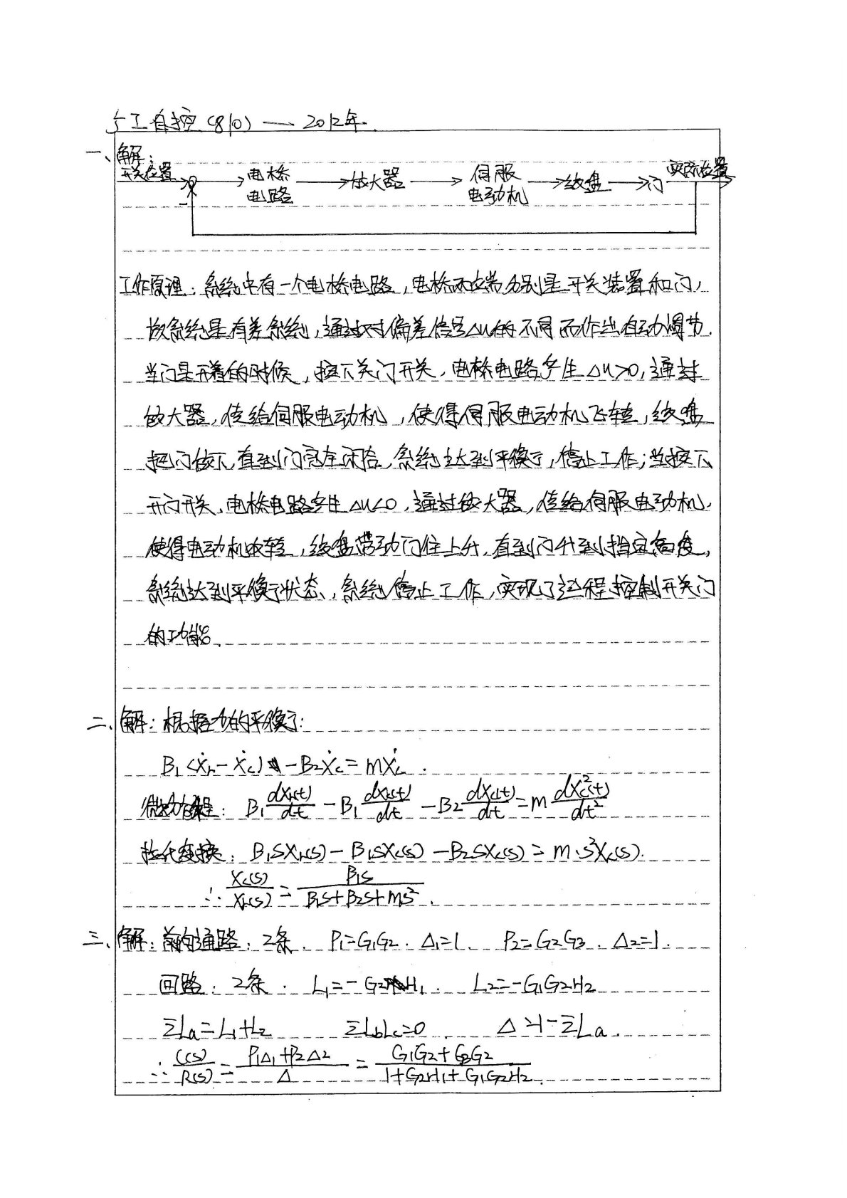 广东工业大学810自控原理2012年考研真题答案